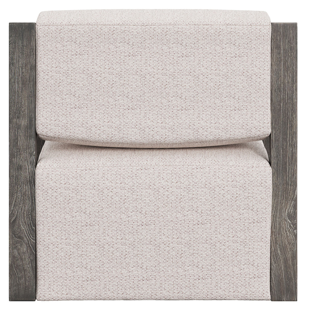 Two exposed teak asymmetrical squares encase the seat and floating back of the Leilani outdoor swivel chair. Offered in the Smoked Truffle finish, the arms provide a gentle slope to the front with softened corners inside the open shape. A rounded back and deeply sloped seat ensure that comfort is key in this 360-degree swivel chair.