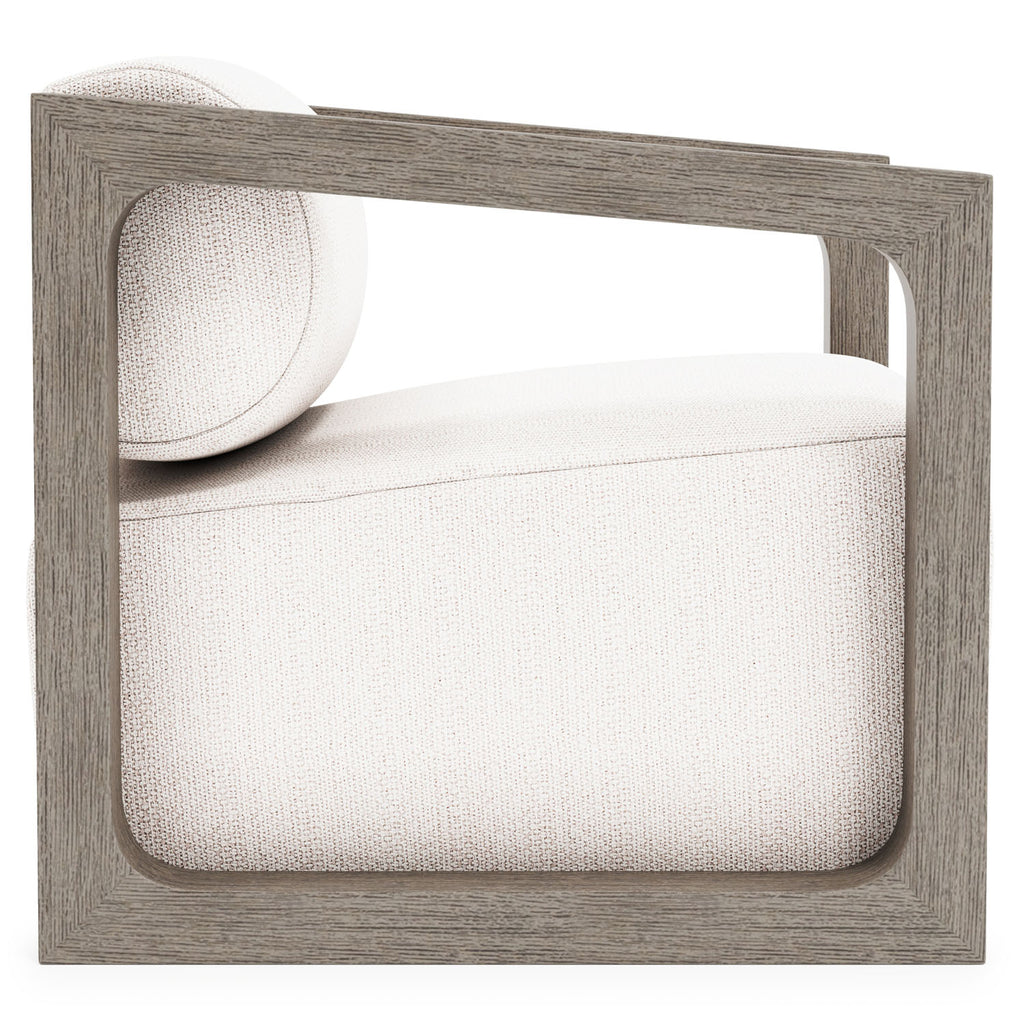 Two exposed teak asymmetrical squares encase the seat and floating back of the Leilani outdoor swivel chair. Offered in the Weathered Teak finish, the arms provide a gentle slope to the front with softened corners inside the open shape. A rounded back and deeply sloped seat ensure that comfort is key in this 360-degree swivel chair.