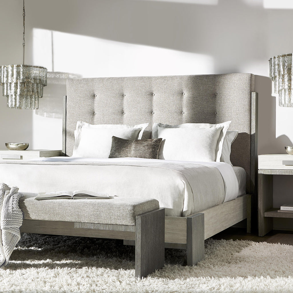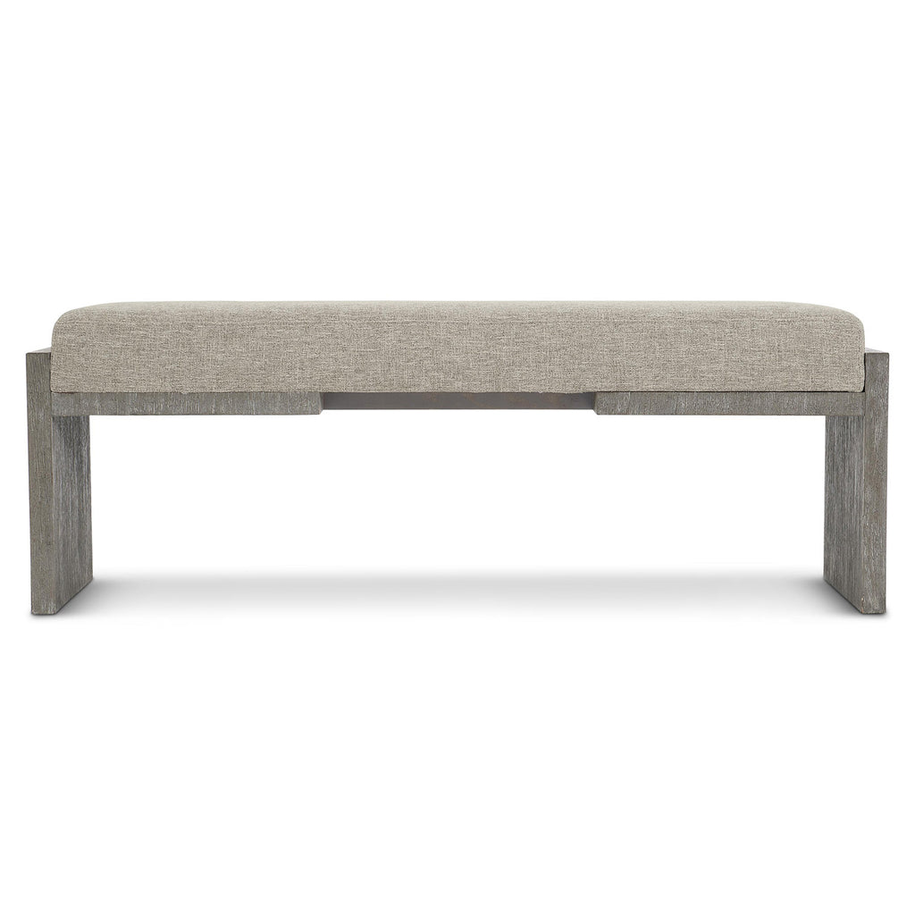 Bernhardt Foundations is a new, refined expression of modern rustic, defined by a minimalist style and relaxed finishes. The elegant Foundations bench elevates a simple form to new heights. Clean, bold lines offer balance and tranquility. Finished in Dark Shale, the cerused, wire-brushed acacia reveals a deep, tactile grain. The weathered gray wood blends seamlessly with the woven textile cushion.