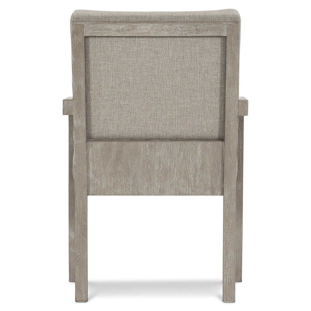 Bernhardt Foundations is a new, refined expression of modern rustic, defined by a minimalist style and relaxed finishes. With clean lines and simple shapes, the Foundations arm chair offers a sophisticated aesthetic. Crafted from cerused, wire-brushed acacia in a Light Shale finish, the frame adds rustic warmth. Woven textile on the upholstered seat and back blends seamlessly with the weathered wood.