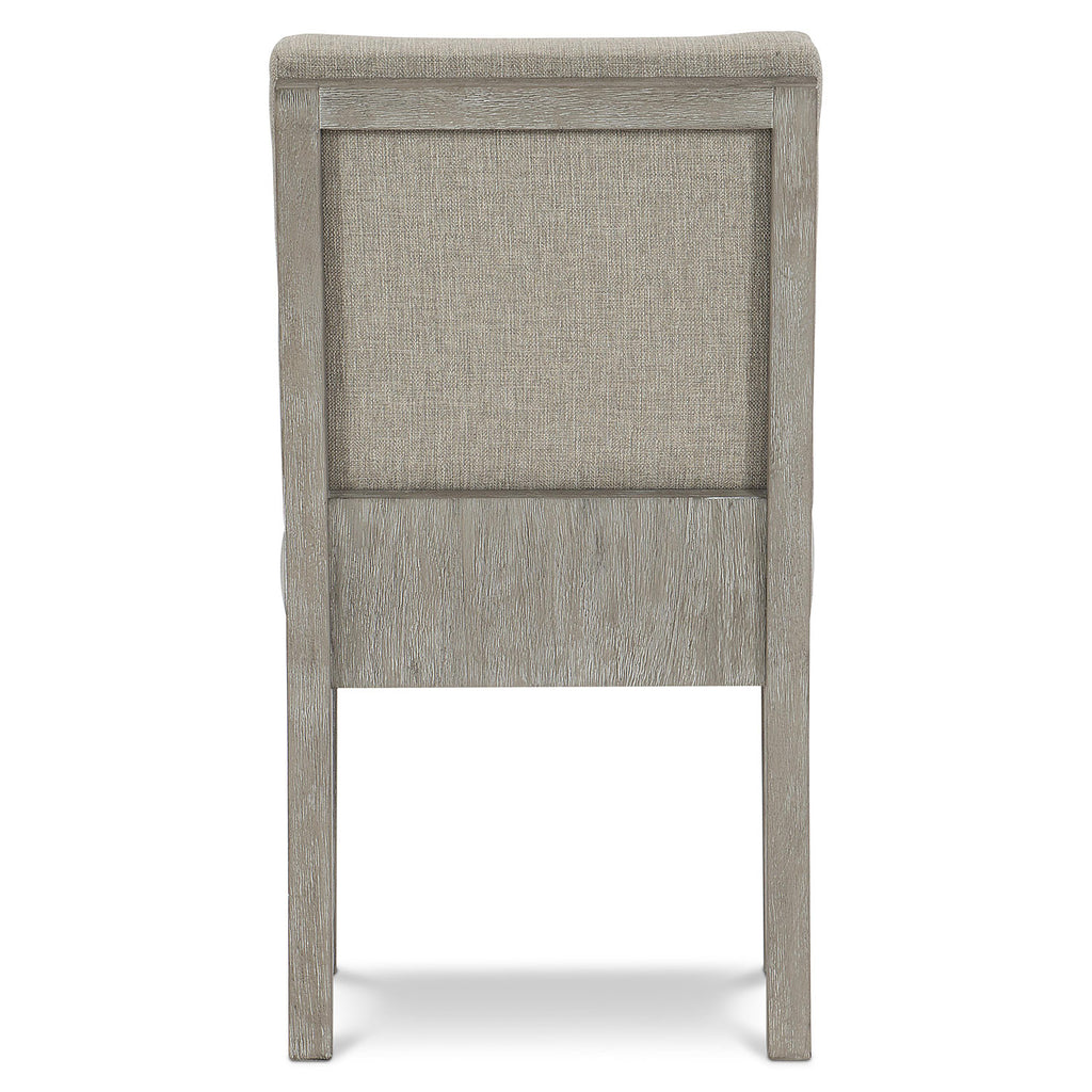 Bernhardt Foundations is a new, refined expression of modern rustic, defined by a minimalist style and relaxed comfort. The Foundations side chair offers a sophisticated aesthetic, softened by a fully upholstered back and seat in a driftwood gray woven fabric. The cerused, wire-brushed acacia frame adds an appealing warmth.