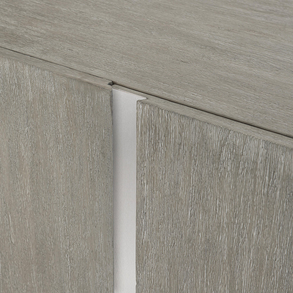 Bernhardt Foundations is a new, refined expression of modern rustic, defined by a minimalist style and relaxed comfort. Elegantly designed and masterfully crafted, the Foundations credenza features three center drawers framed by single doors on either side. Spacious and graceful, its bold geometric design creates a sense of symmetry and tranquility. This piece is an instant heirloom.