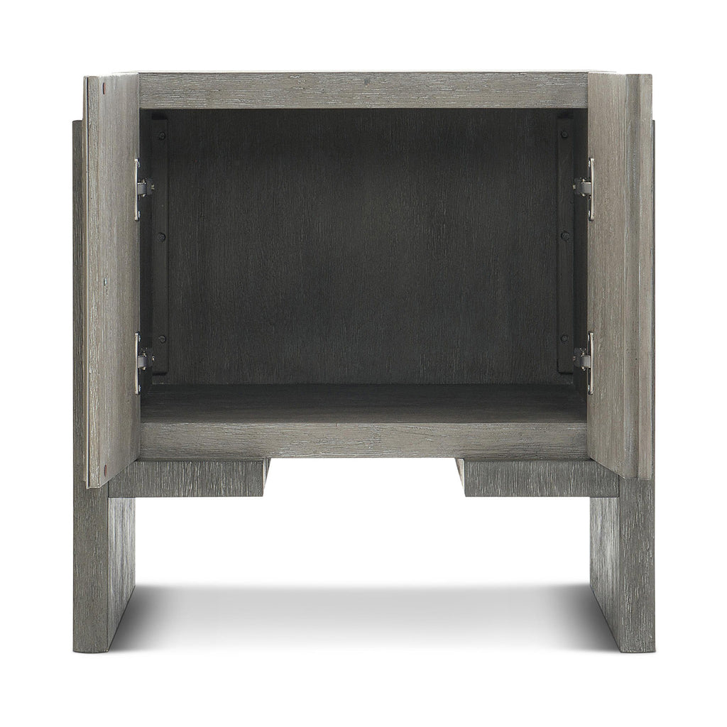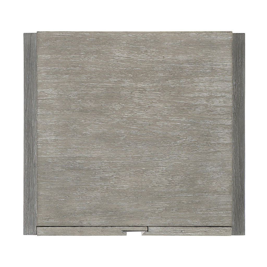 Bernhardt Foundations is a new, refined expression of modern rustic, defined by simple forms and relaxed finishes. Crafted from cerused, wire-brushed acacia, the Foundations side table features clean lines and intersecting, thick-cut planes. A palette of oyster and driftwood grays softens the look, while an inset brushed stainless steel panel reinforces the modern, minimalist aesthetic.