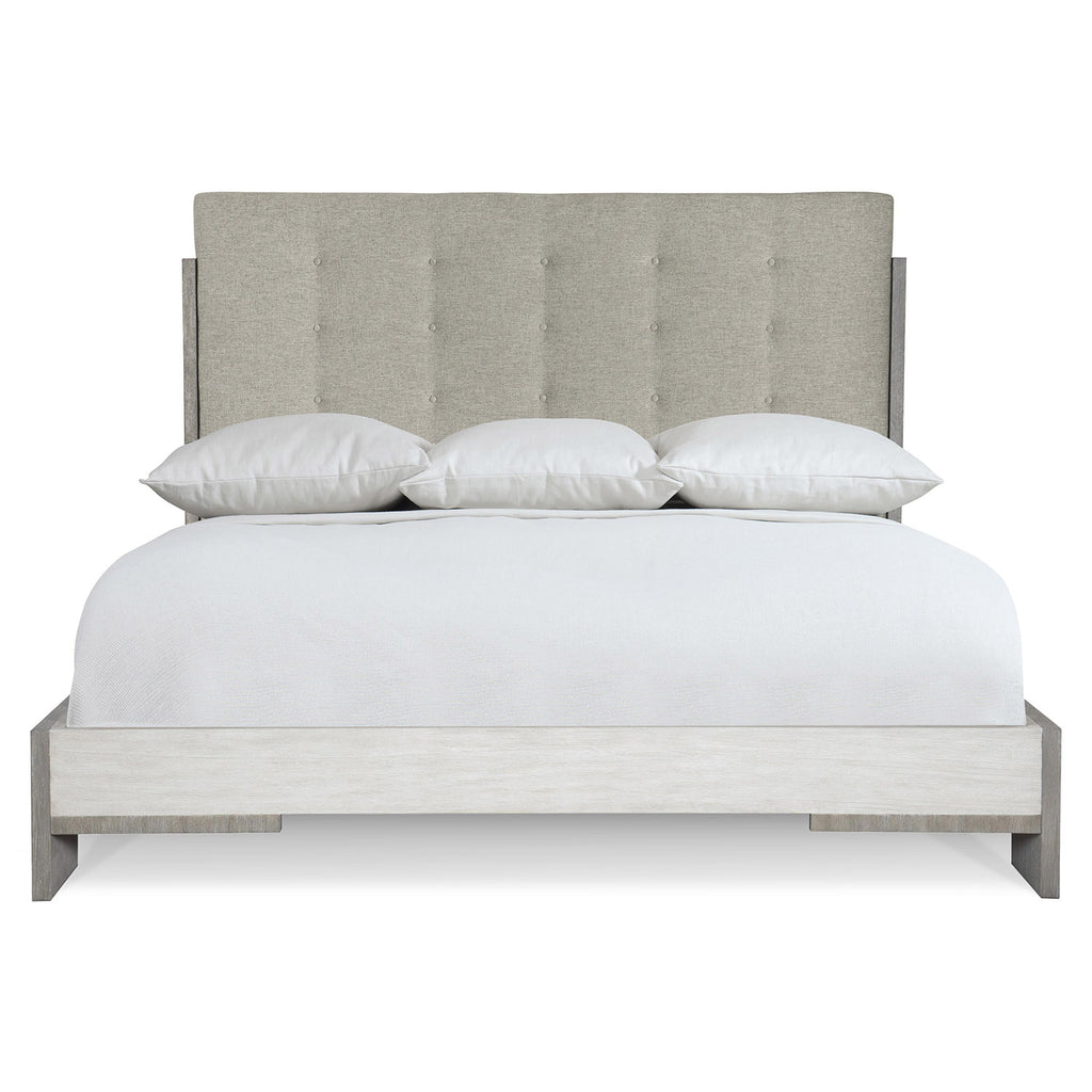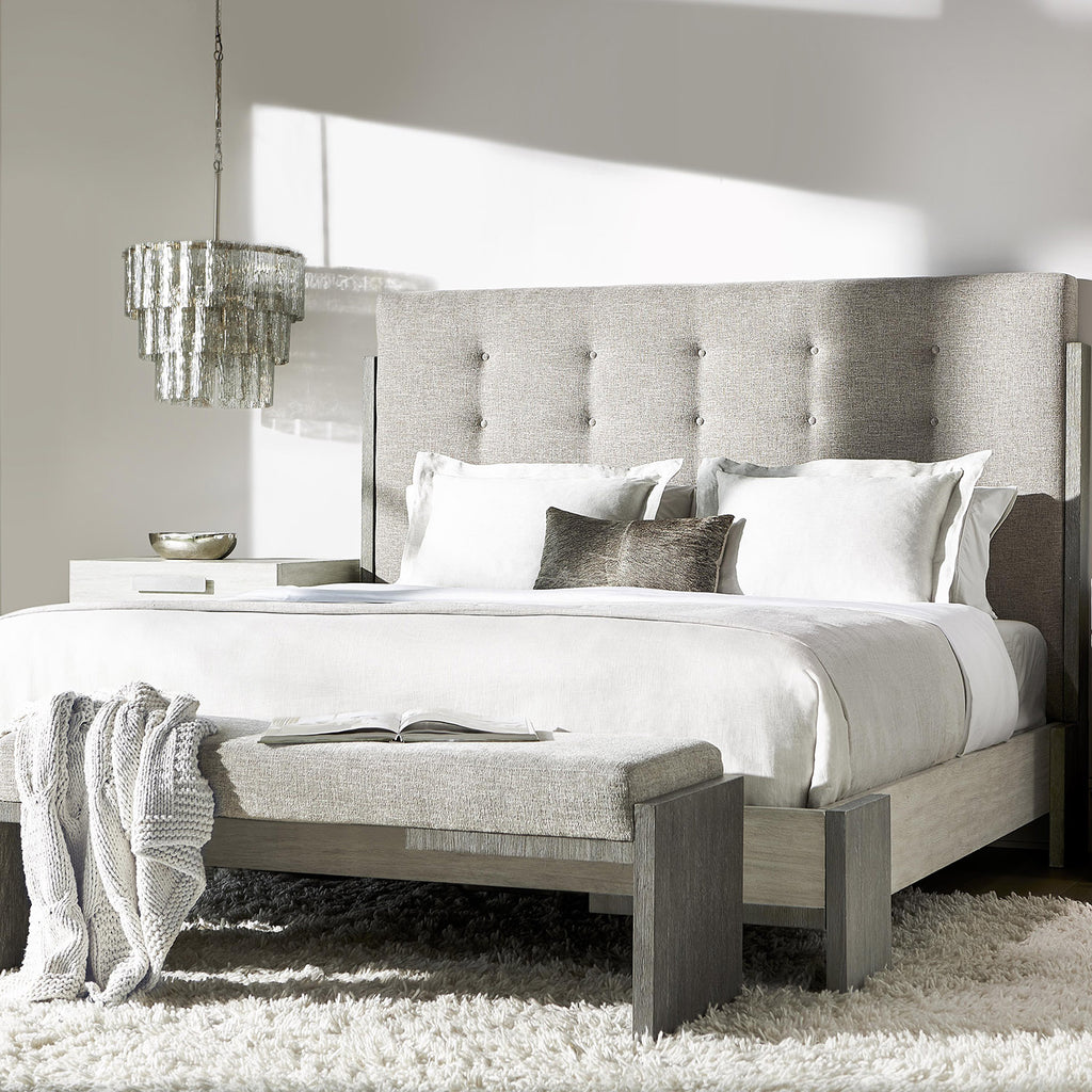 Bernhardt Foundations is a new, refined expression of modern rustic, defined by a minimalist style and relaxed comfort. Highlighted by a button-tufted headboard and a sleek, architectural acacia wood frame, the Foundations bed transforms any bedroom into a cozy haven. Clean lines and intersecting planes merge to create a look that exudes remarkable calm and tranquility.