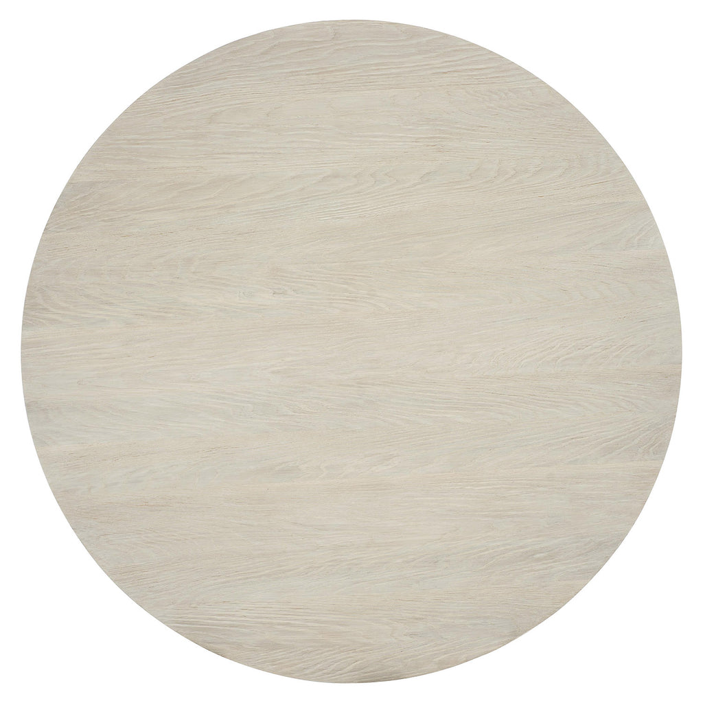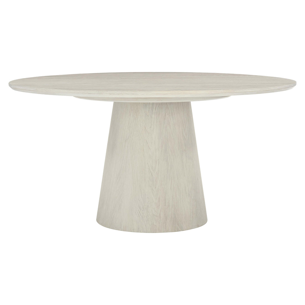 Simple and elegant, the Bernhardt Interiors Alexa dining table pairs a round top with a round tapered pedestal for a sculptural, balanced look. Sandblasted white oak veneers in a jicama finish convey an air of casual sophistication with a light, natural feel.