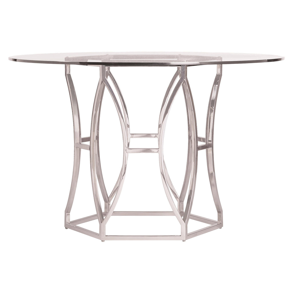Bernhardt Interiors brings the idea of beauty in art to the pursuit of furniture making. The Argent dining table catches the eye with its alluring hexagonal design. Tempered glass sits atop two polished stainless steel bases for a sleek, modern look. The rectangular glass top features clipped corners and eased edges.