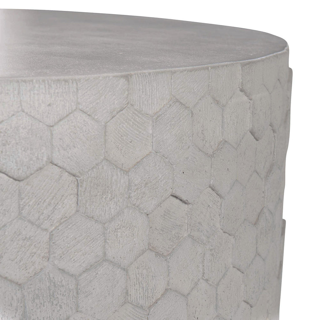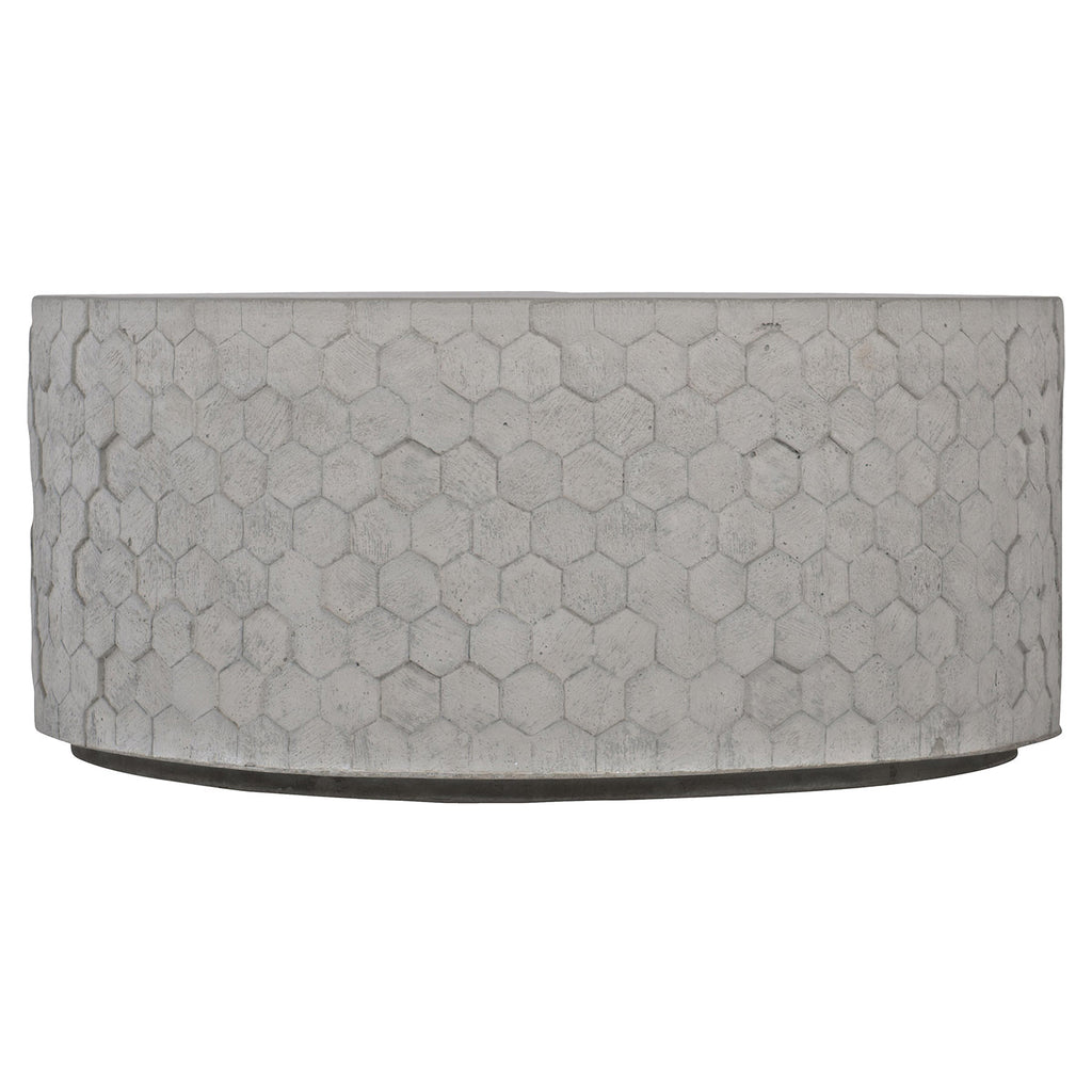 Bernhardt Interiors offers high-design furniture with an eclectic edge. Crafted from cast concrete, the Athena round cocktail table interlocks hexagons in a honeycomb pattern for an organic, contemporary look. A natural concrete finish creates variations in the texture, while the uneven pattern adds depth and visual appeal. Formed as a single cylinder with a plinth base, the table brings a unique sense of modern style.