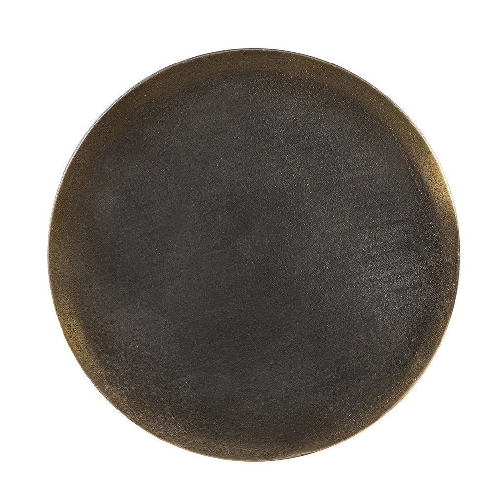 Industrial style gets a modern twist for the Bernhardt Interiors Avi accent table. Inspired by a piston design, an inner core of cast aluminum rises above a wrapped outer shell. A Blackened Brass finish and textural surfaces add beautiful visual interest.