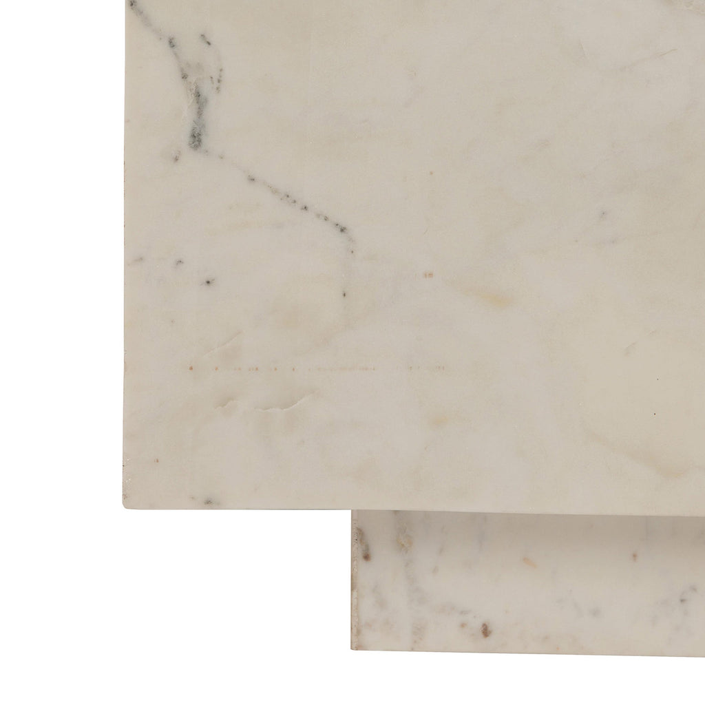 Crafted from marble imported from Banswara, India, the Bernhardt Interiors Donnelly cocktail table features a solid rectangular top resting on a plinth base. The white stone is luxurious and unique, thanks to its inherent fine quality, glossy sheen and subtle veining. The result is a table of timeless elegance.
