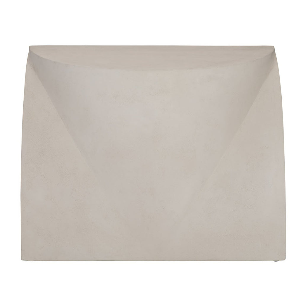 The stunning geometric design of the Lunula side table lends visual interest to living spaces. Perfectly proportioned and beautifully designed, it is constructed of textured, natural stonecast. A smooth flow of straight lines and curved shapes create a sleekly modern look.
