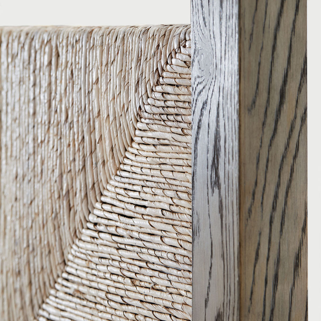 • Material: Oaks solids and veneers/ woven abaca/tubular steel, Woven, Wood, Metal
