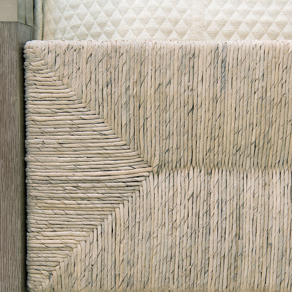 • Woven Abaca headboard and footboard panel in Light Gray Wash finish.