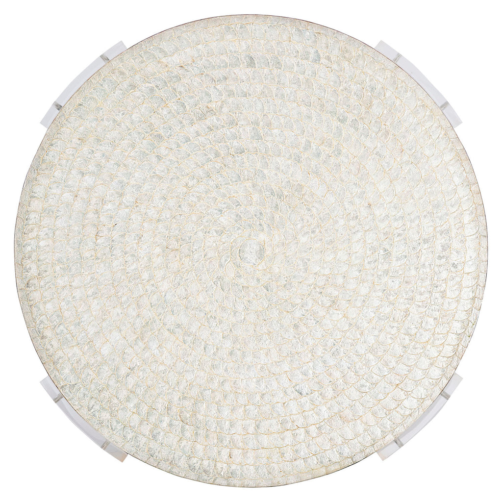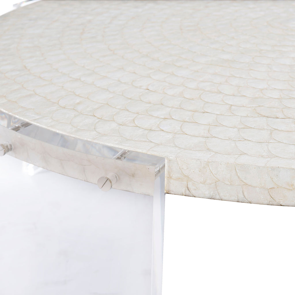 • Material: Capiz shell covered top, Acrylic legs, Nickel Plated bolts, Natural, Acrylic, Metal