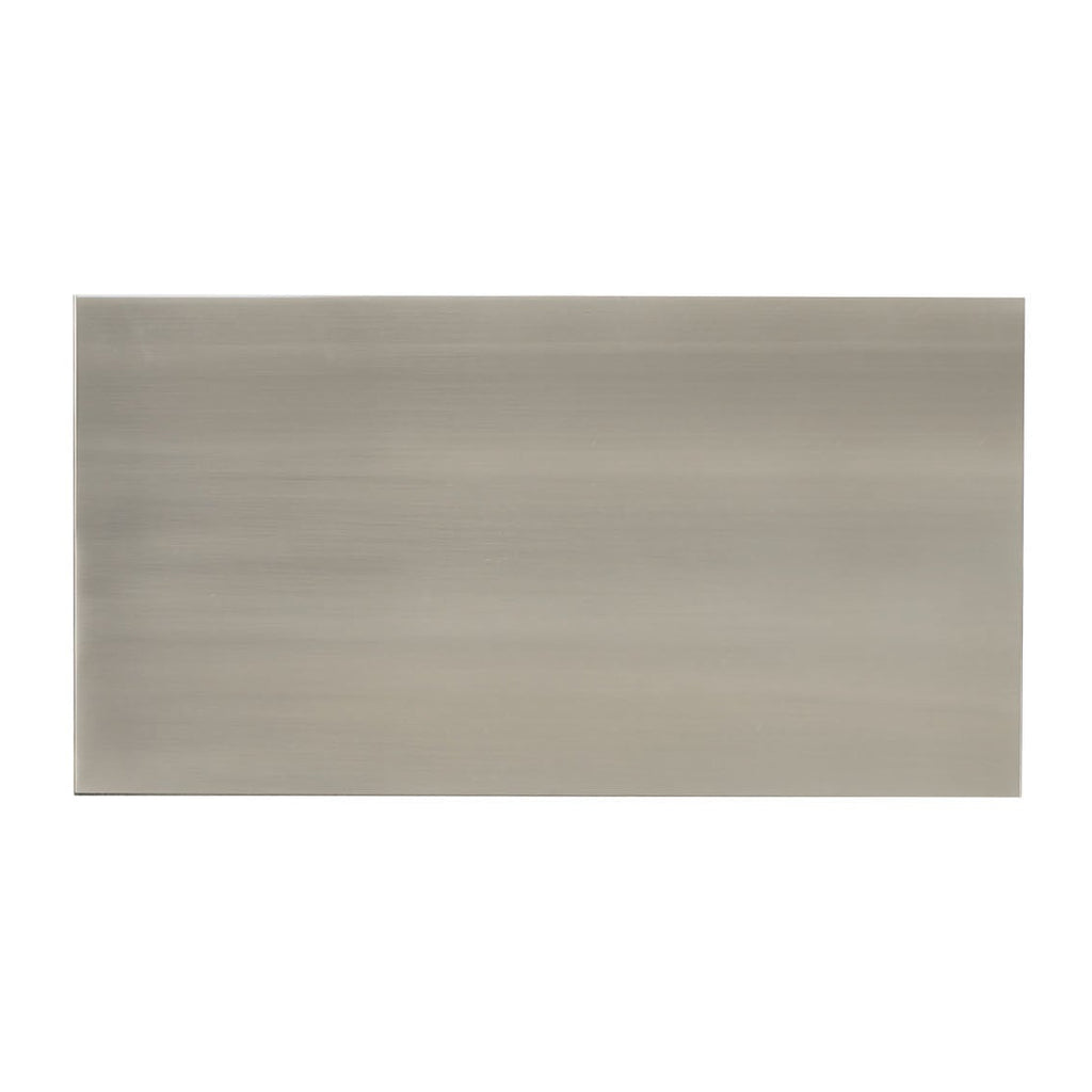 • Stainless steel sheet metal exterior in Tarnished Nickel finish. Open front-to-back center section with Cerused Greige interior finish.