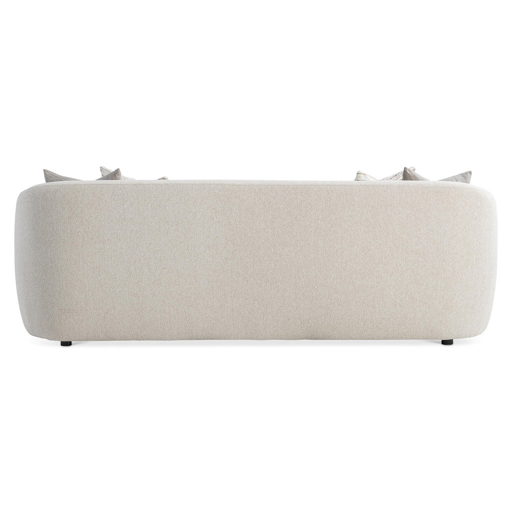 Forming one continuous curvaceous line, the back and arms of the Bernhardt Living Austen sofa create a modern silhouette. The tight back creates a streamlined structure, while the three deep cushions plus curated throw pillows offer a plush, comfortable seat. It's an elegant and tailored style with a graceful design.