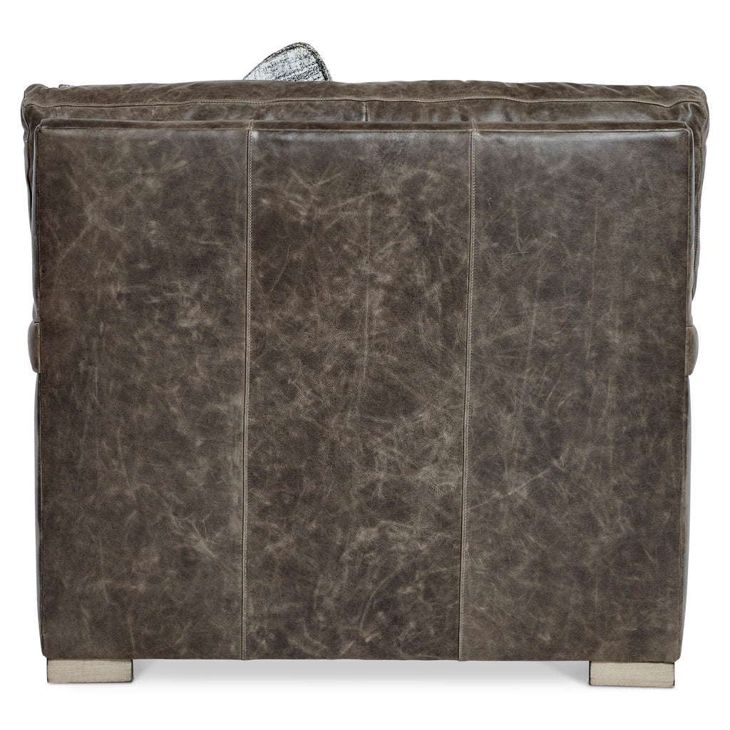 The lush leather seating on the Burnham chair takes a tailored approach, with stitching on the sides and back that offers distinctive detailing. A deep seat cushion, box-stitched back pillow and complementary throw pillow offer incredible comfort.