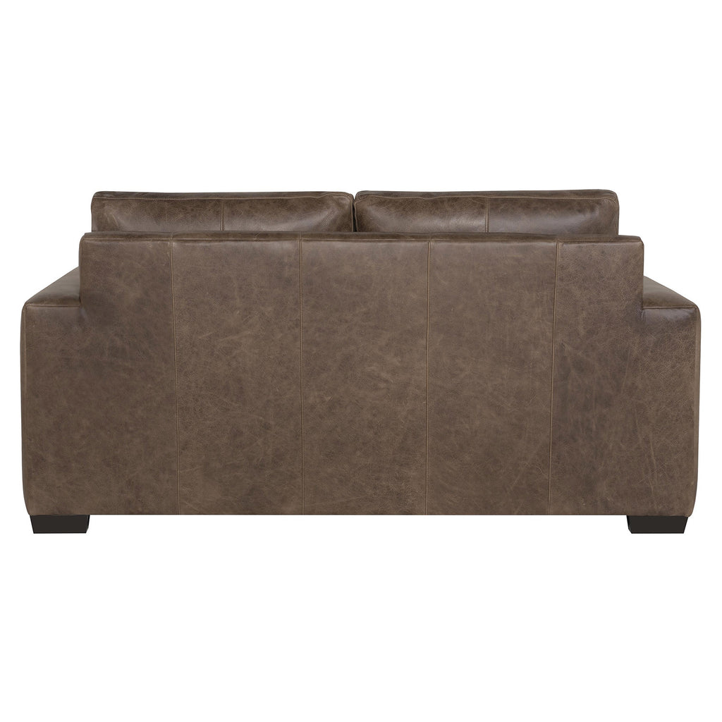 Dressed in luxurious top-grain leather, the Bernhardt Living Dawkins loveseat offers casual comfort with a high-end look. The timeless modern design features wide track arms and tapered block feet. Plush cushions and fiber back pillows make this sophisticated loveseat the perfect place to lounge in style.