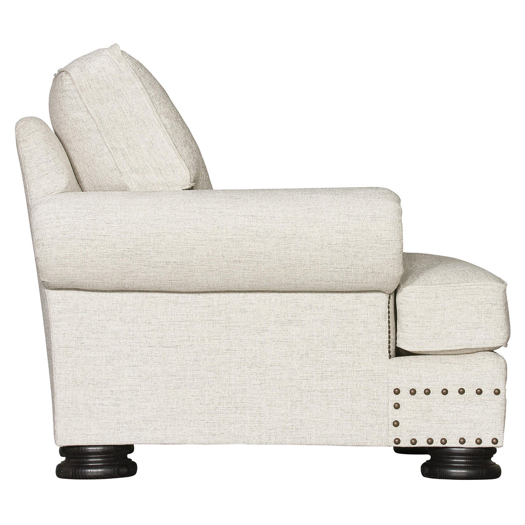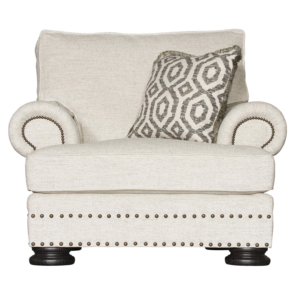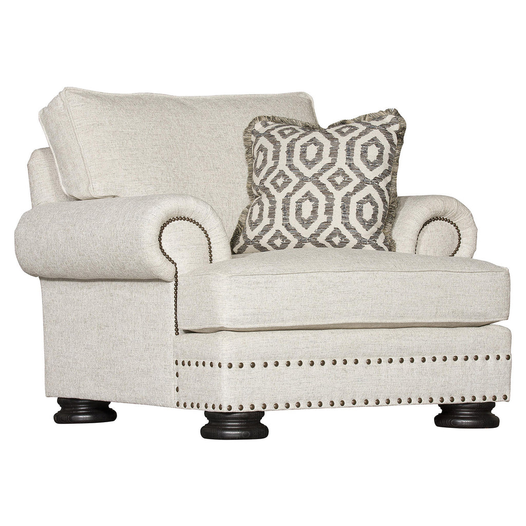 Enjoy the rich look of our Foster furniture line in a convenient chair size. This collection projects a feeling of grandeur in a comfort that will have you feeling right at home. The padded frame and thick seat and back cushions provide relaxed seating. Wide legs add a luxurious final touch. Pair this chair with a Foster Ottoman to extend the comfort further.