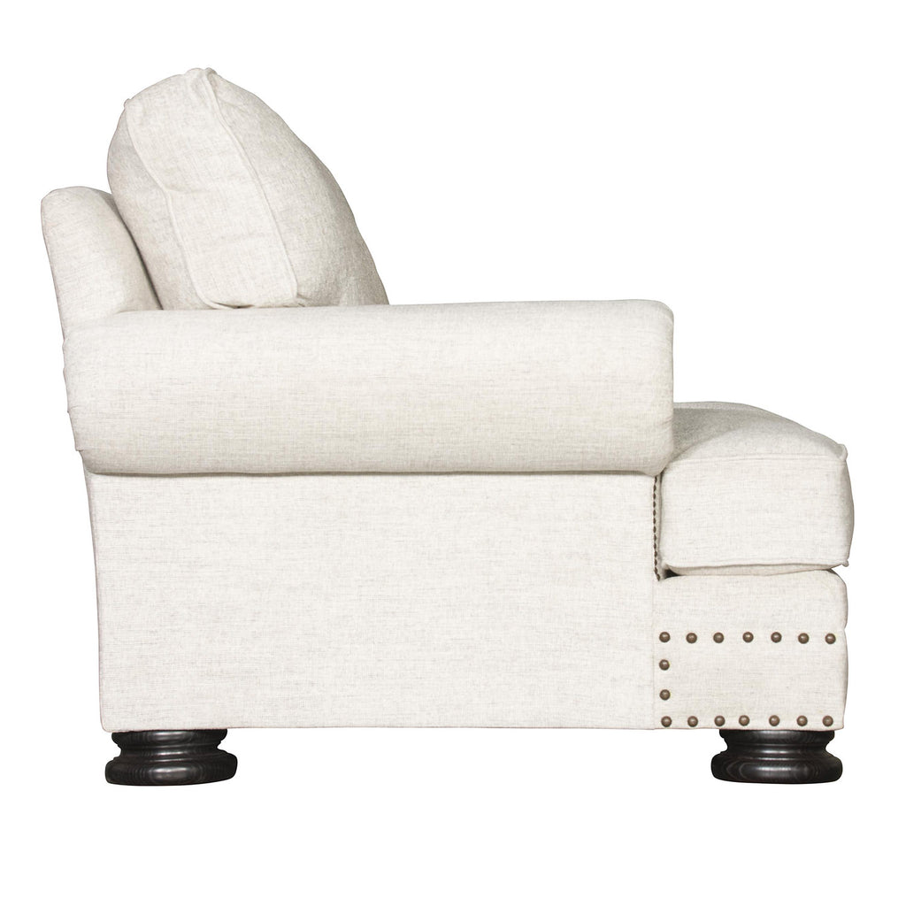 Enjoy the traditional grandeur of our Bernhardt Living Foster collection. The stately design brings comfortable support thanks to its padded frame and thick back and seat cushions. Wide legs add a luxurious touch. Blend it with four throw pillows to complement the sofa and surrounding décor.