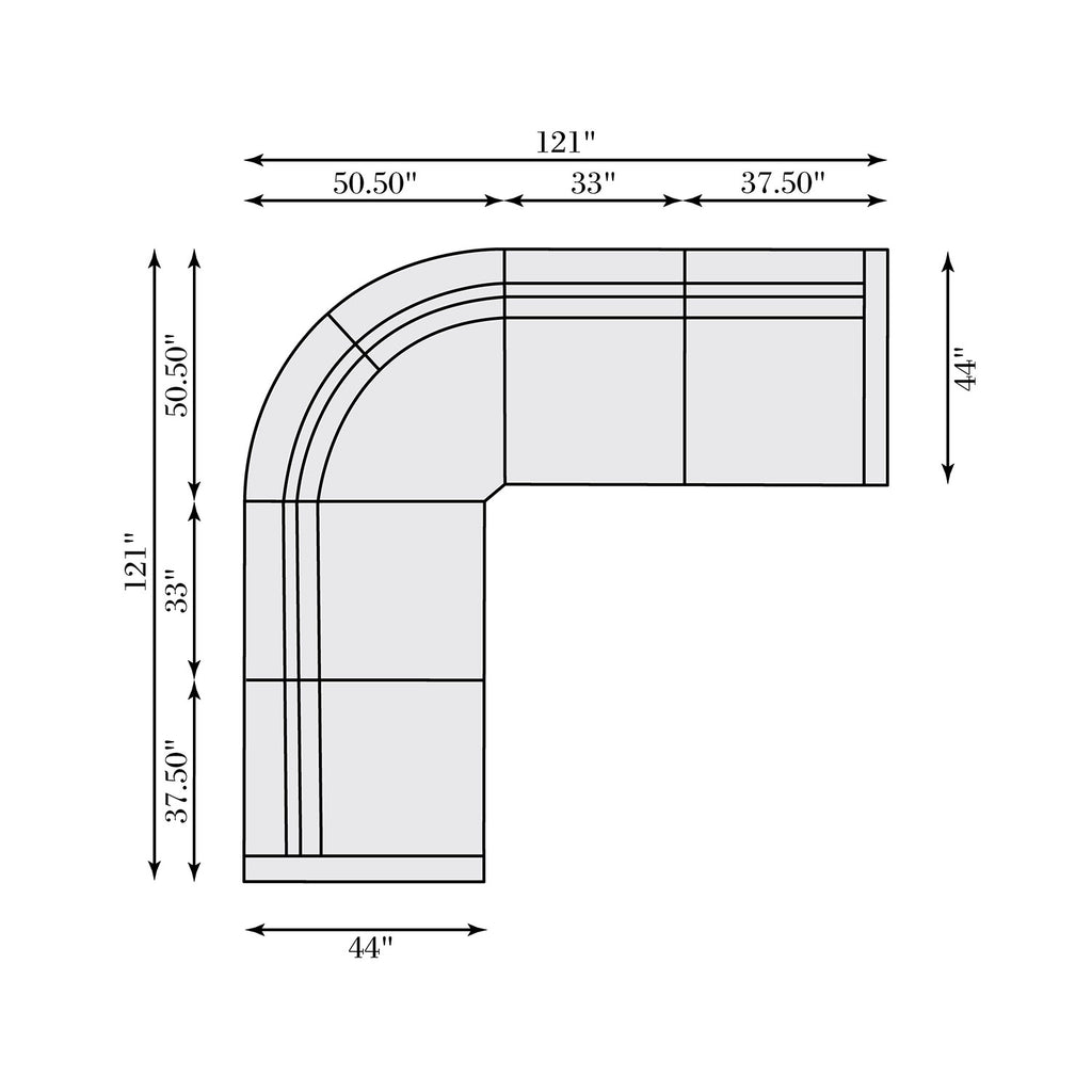 • 121in W x 121in D x 33in H