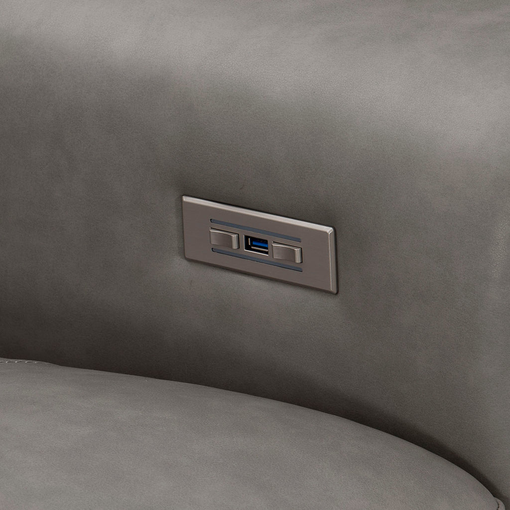 The ultimate in deep relaxation, the Lioni sofa features fine leather upholstery and power motion technology. With attached bustle back pillows, power headrests and power footrests, it offers a range of luxurious seating positions. A single USB port gives the option to recharge while reclining.