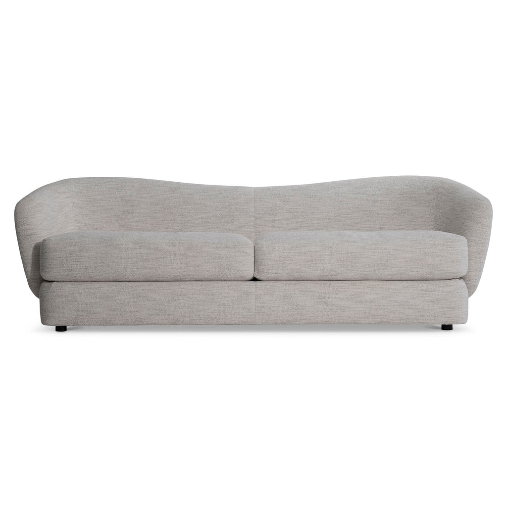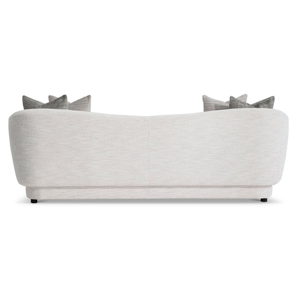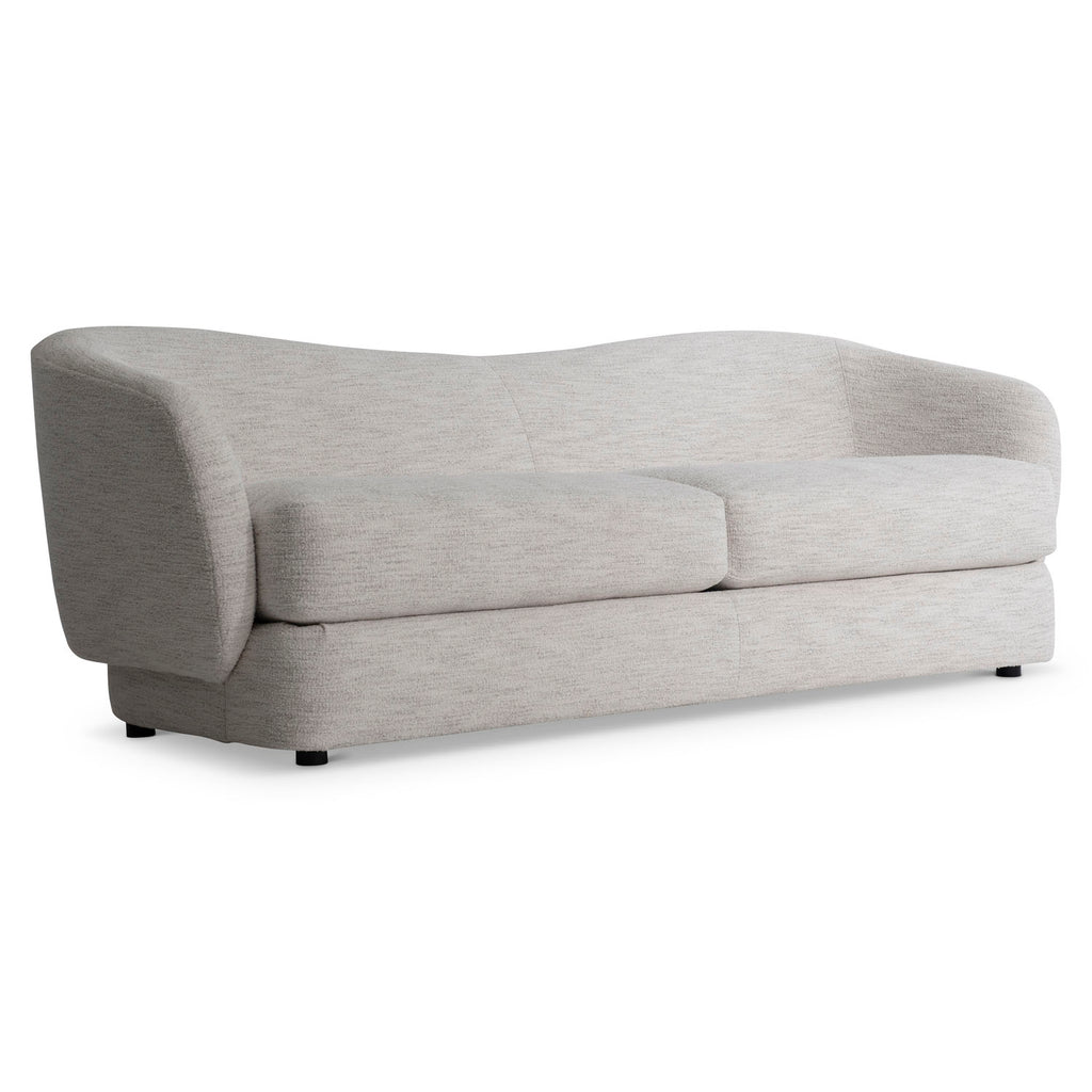 The back of the Margot sofa curves to create embracing shelter arms for a comforting design. Two deep seat cushions and tight back upholstery offer tailored details. Two complementary throw pillows and round feet complete the modern styling.