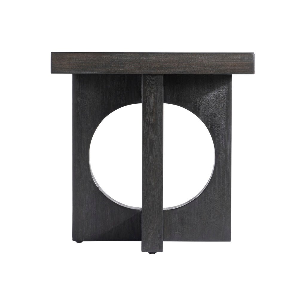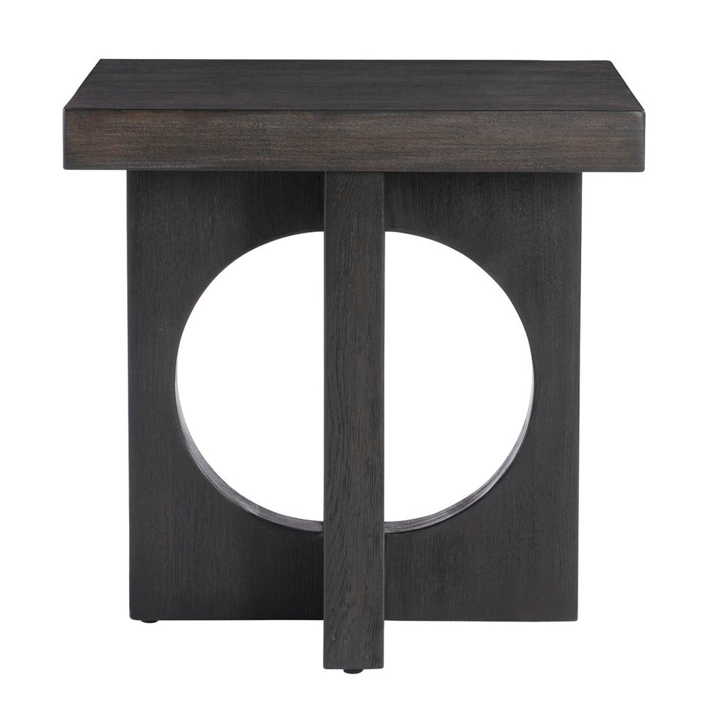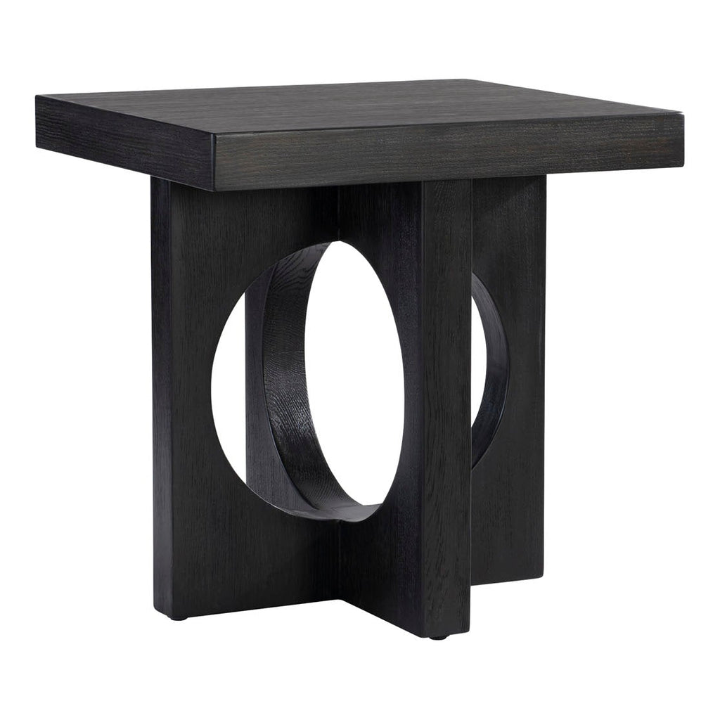 Circles and squares make the perfect shape in the Micah side table. Two squares with circle cutouts are connected for the base, which supports a square top. Fashioned in a Black Truffle finish, the result is a stunningly modern geometric design.