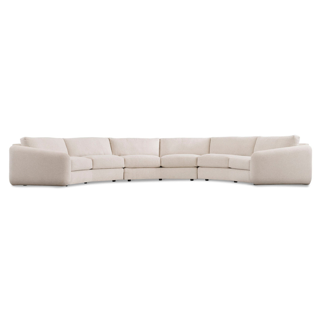 Inspired by midcentury pit sectionals, the Soleil fabric sectional has an exaggerated crescent shape that offers deep comfort and sleek lines. The angled back provides the ultimate in relaxation.