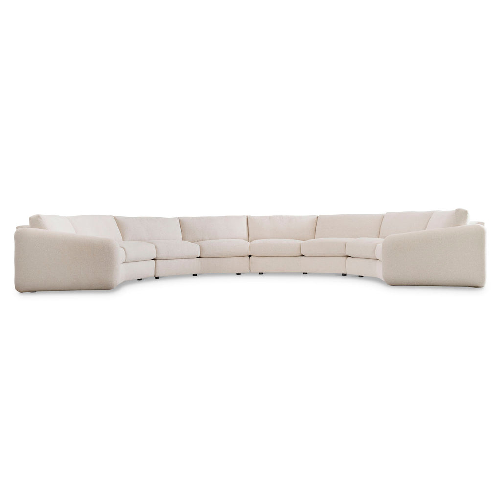 Inspired by midcentury pit sectionals, the Soleil fabric sectional has an exaggerated crescent shape that offers deep comfort and sleek lines. The angled back provides the ultimate in relaxation.