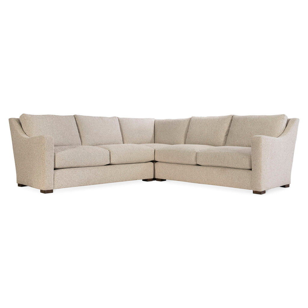 Clean lines and graceful curves blend modern and traditional shaping for the Ventura sectional. The arms gently swoop from a tall back and then take a straight line to the floor. Deep seat cushions and box-edge bordered back pillows provide the ultimate in comfort.