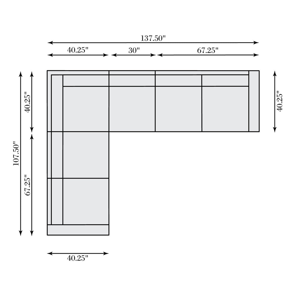 • 137.5in W x 107.5in D x 34.5in H