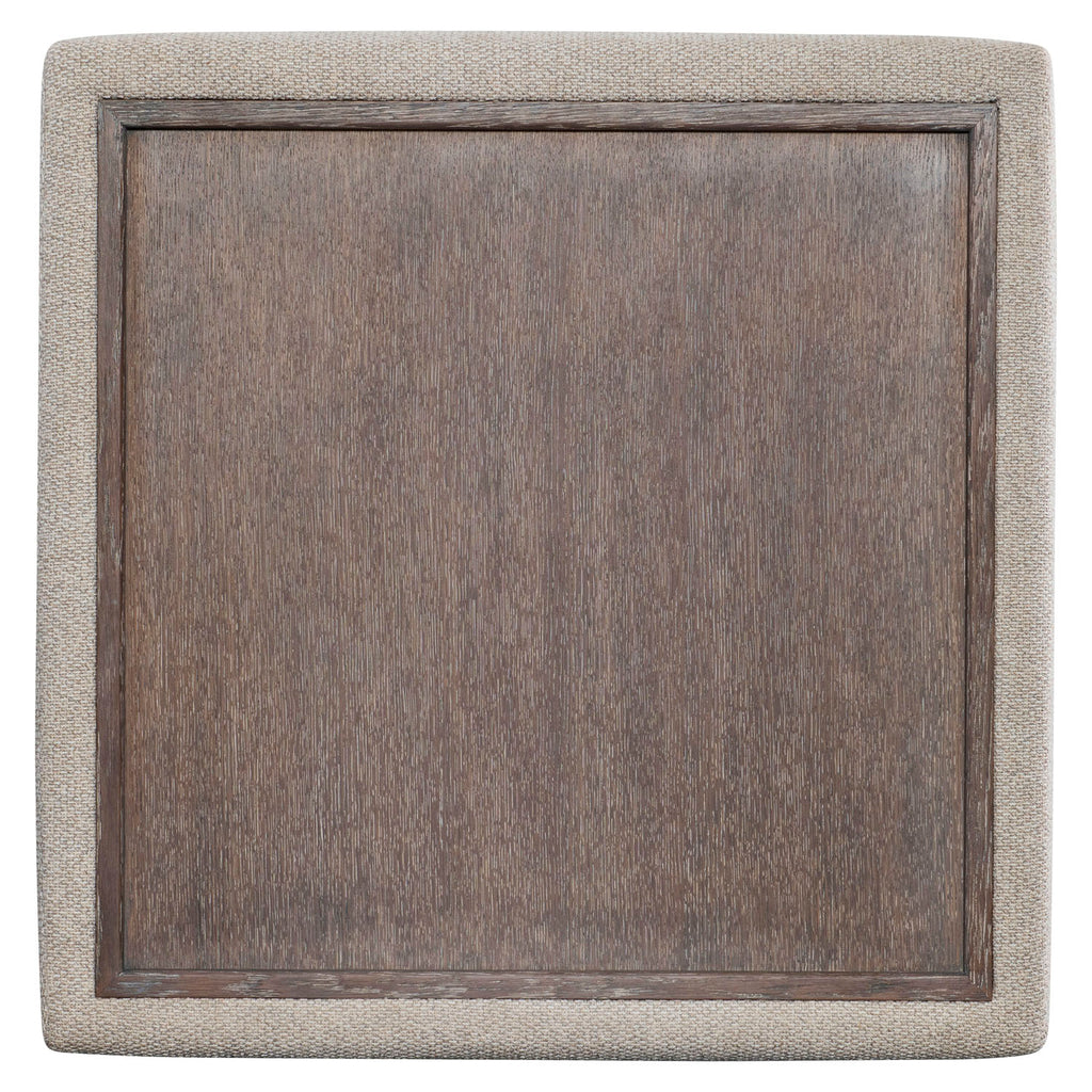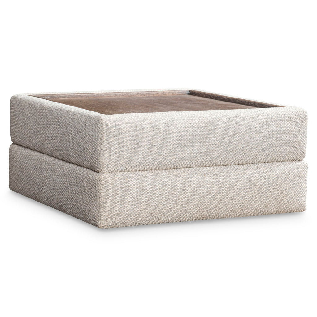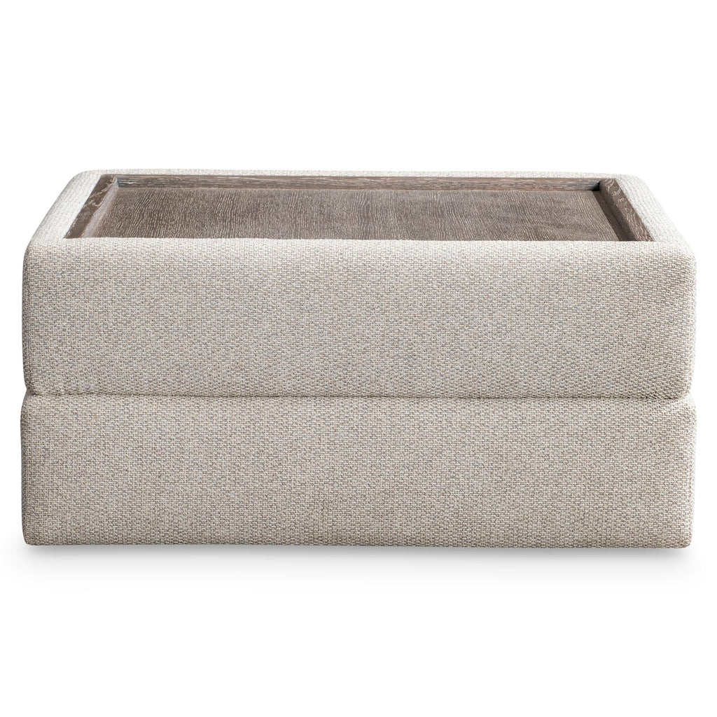 The Vista ottoman is marked by gentle curves, stitched detailing and a wooden tray top that offers functionality. Lines are softened and the upholstery is lushly designed for maximum comfort.