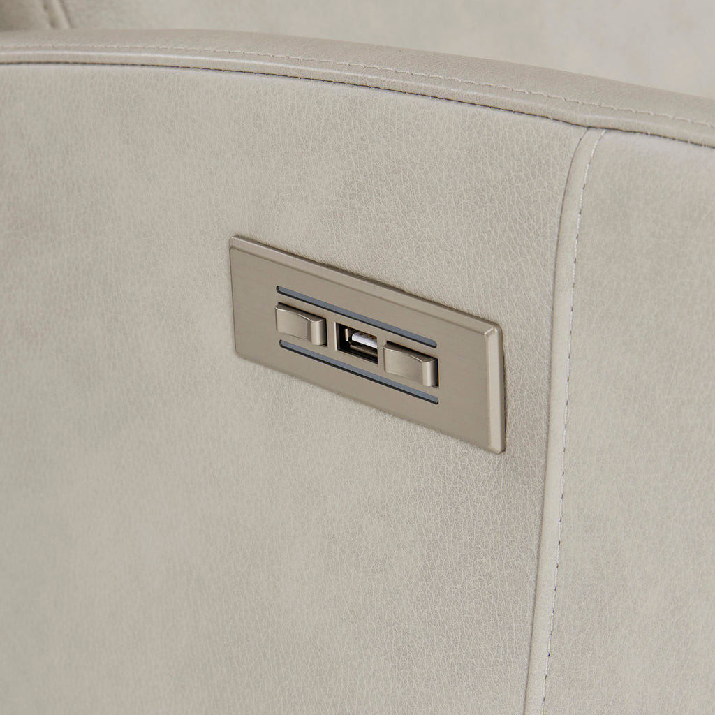 The Weller design transforms a traditional wing chair into a power motion chair. The arms are slightly flared, and deep cushions are stitched for maximum comfort. Controls on the outside arm offer smooth reclining movement, as well as an integrated USB port.