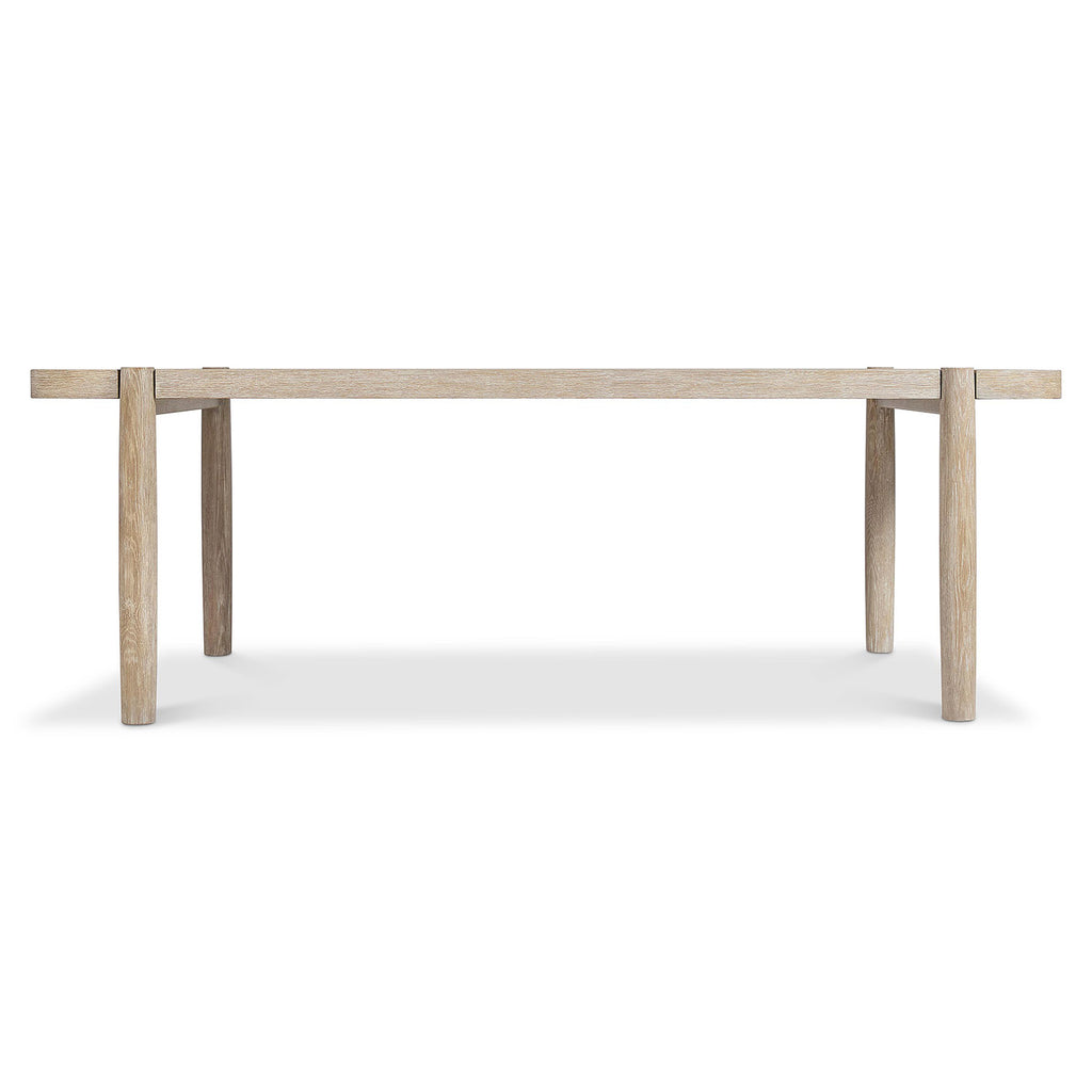 The Bernhardt Loft Antibes dining table elevates a minimalist design with shapely tapered legs that intersect with the rectangular top. It creates a simplistic but very modern style in a calming and warm Roz finish. The natural grains and textures of the wood are highlighted for an organic look.