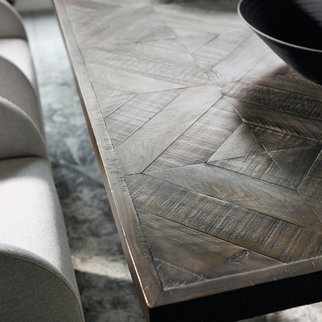 The Bernhardt Loft Logan Square collection is casually sophisticated, combining modern minimalism with a cool retro sentiment and 1970s revival style. Architectural structure, open frames and asymmetrical compositions combine with textural details and a moody palette of rich brown and soft black. Geometric, diamond and herringbone patterns highlight tonal contrasts, while cast concrete and metals suggest a metropolitan cityscape. The look is hip and edgy with sleek silhouettes and stylish, luxe appeal.