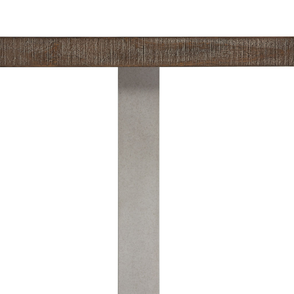 • Table has fancy face top in Sable Brown finish and two open tubular steel pedestals in Gray Mist finish.