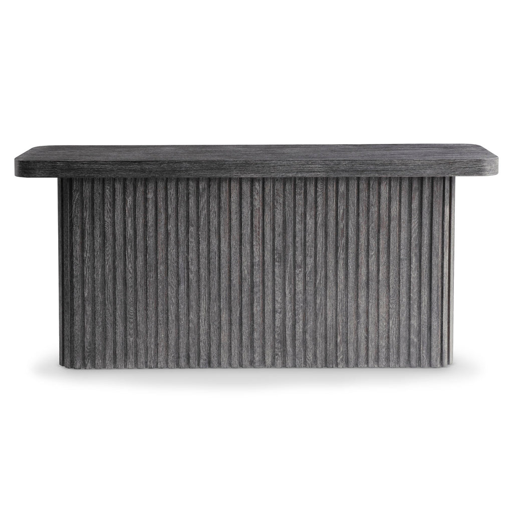 The Menton console table creates a casually cool style with simple lines and architectural detailing. The base has deeply reeded sides that highlight the deep Sutton finish. A rectangular top offers softened edges and a beautiful woodgrain.
