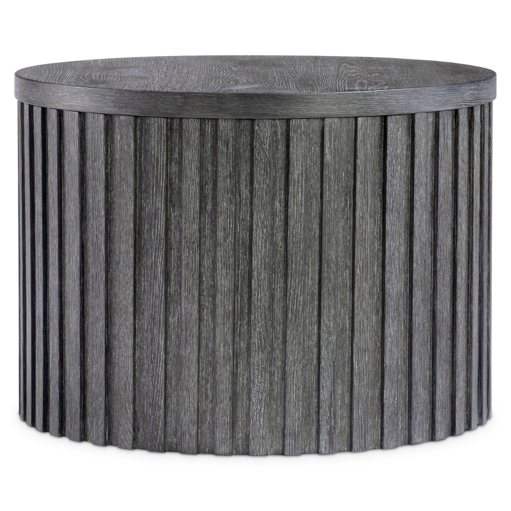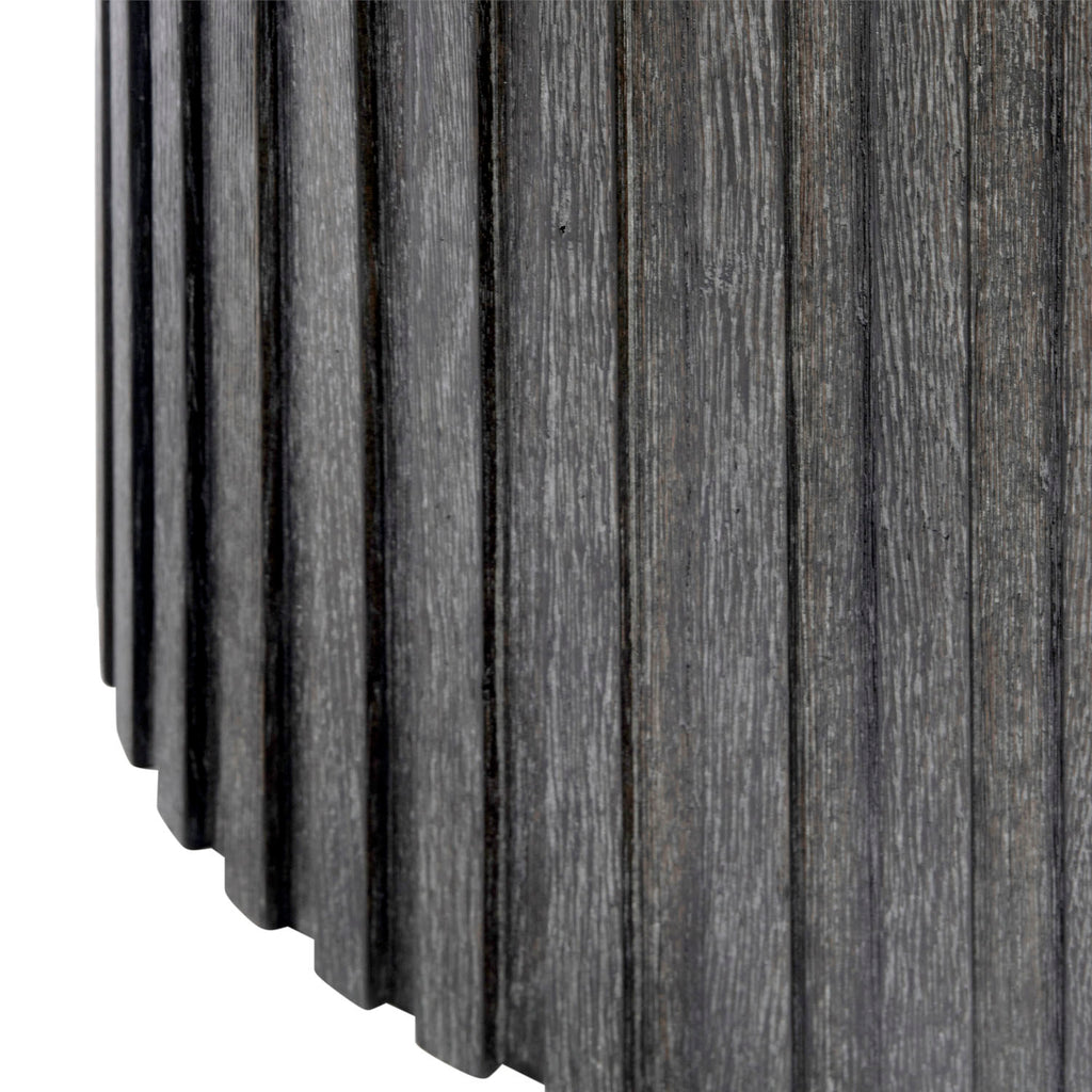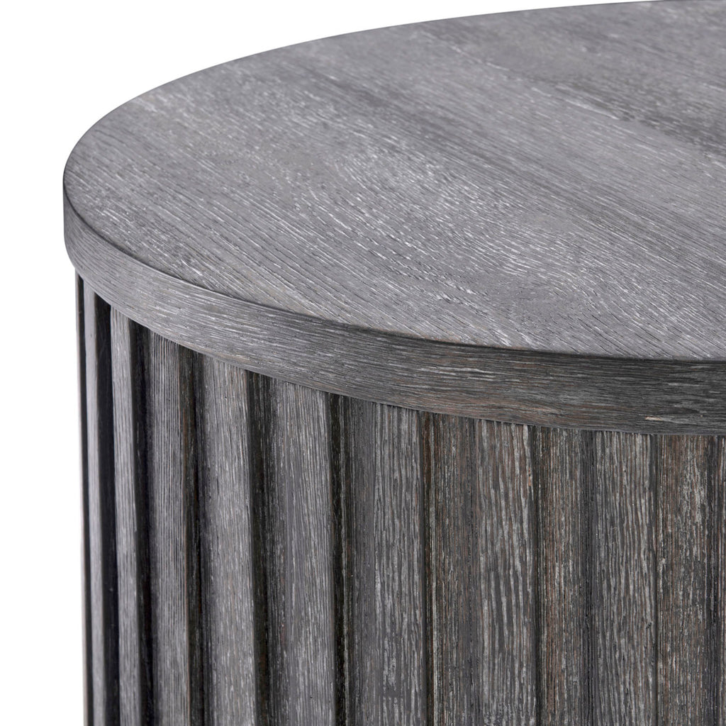 Inspired by a classic drum shape, the Menton side table features deep linear reeding on the sides and a smooth table surface. The design is casual and modern, with an elevated appeal. The deeply textured woodgrain is highlighted by our Sutton finish.