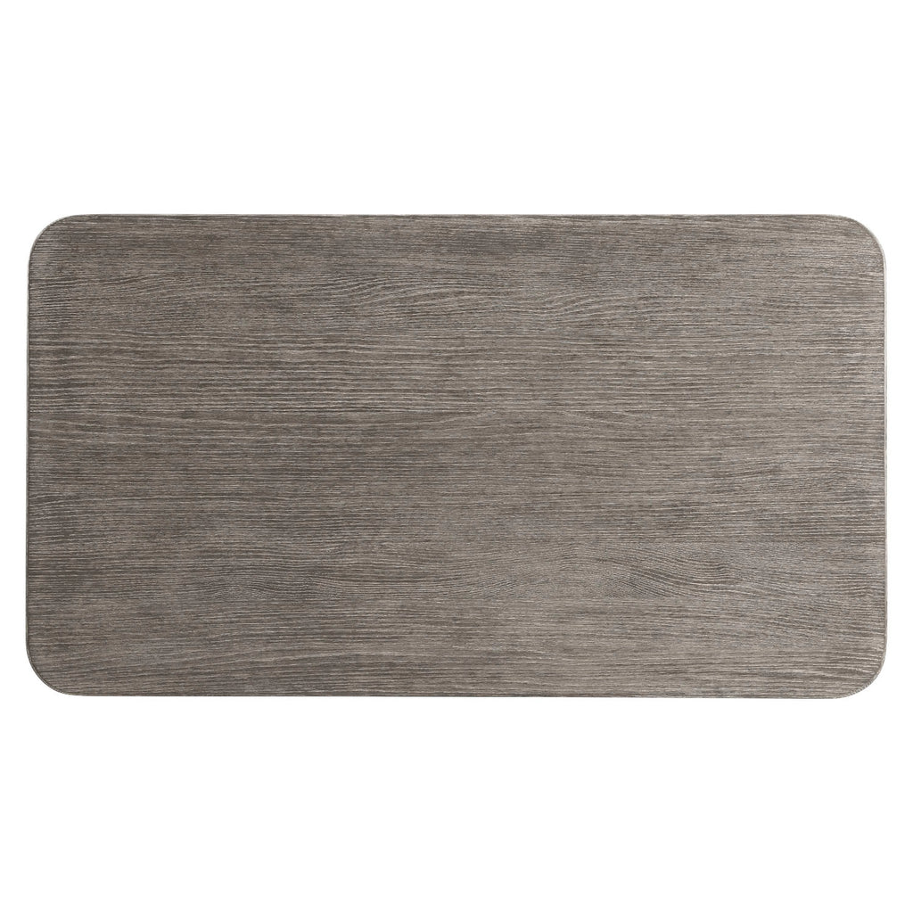 The Monolith cocktail table perfectly balances curves and lines with softly rounded corners on the top and the plinth base. A unique panel extends from the base, offering bold detail. Deep wirebrushing creates beautiful texture in the Puma finish.