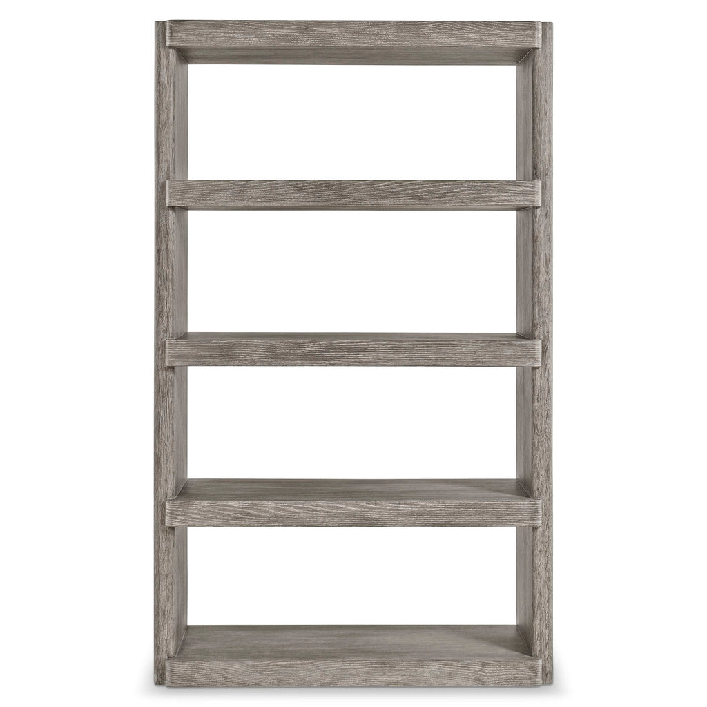 Simple lines take on an elevated style for the Monolith etagere. The shelves have rounded corners and extend slightly beyond the fixed side supports, giving the design a unique style. Wirebrushed oak adds visual interest that's heightened by the Puma finish.