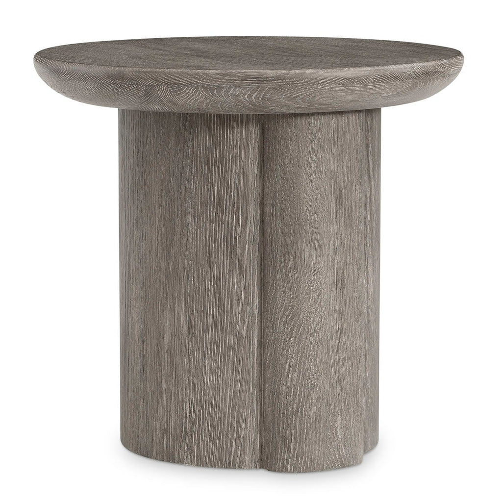 The Monolith side table perfectly balances curves and lines with a smooth round top and circular base. A unique panel extends from the base, offering bold detail. Deep wirebrushing creates beautiful texture in Puma finish.
