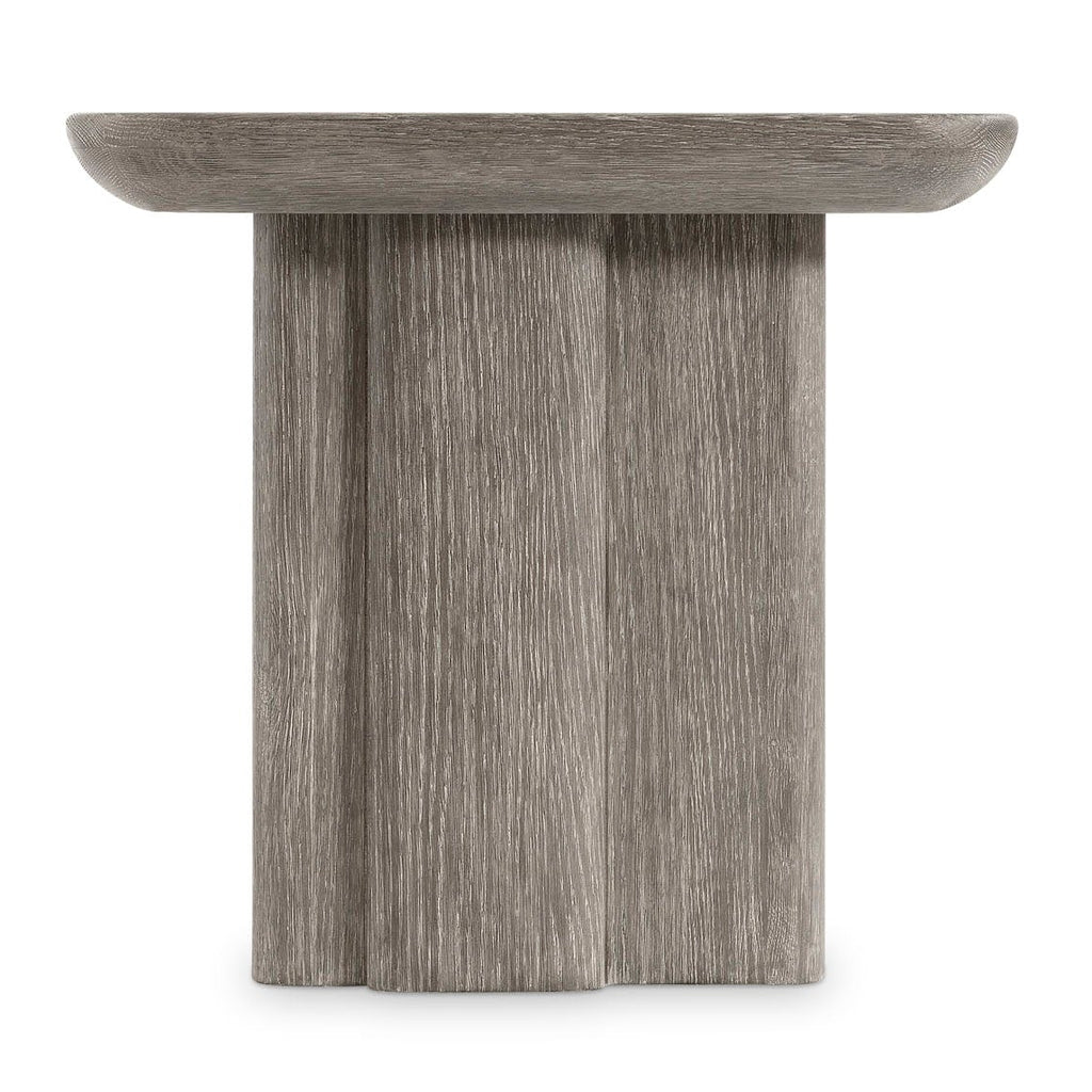 The Monolith side table perfectly balances curves and lines with a softly rounded square top and straight forms on the base. A unique panel extends from the base, offering a bold detail. Deep wirebrushing creates beautiful texture in Puma finish.