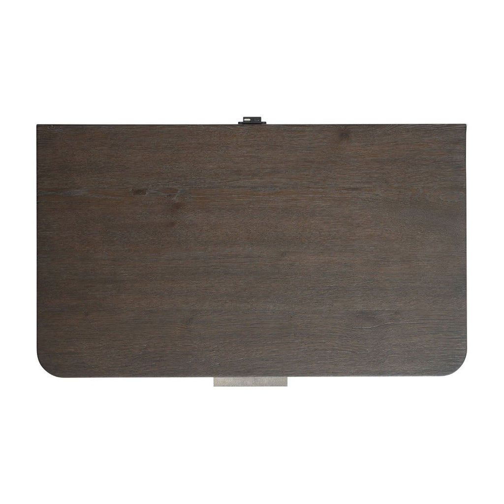 • Three pull-to-open, soft-close drawers with applied textured aluminum tab pulls in Atra finish