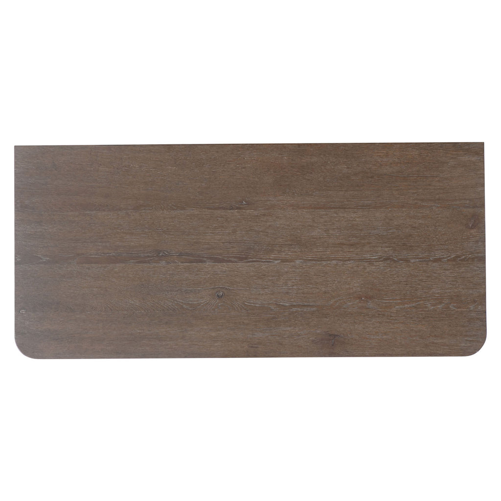 • Five pull-to-open, soft-close drawers with applied textured aluminum tab pulls in Atra finish