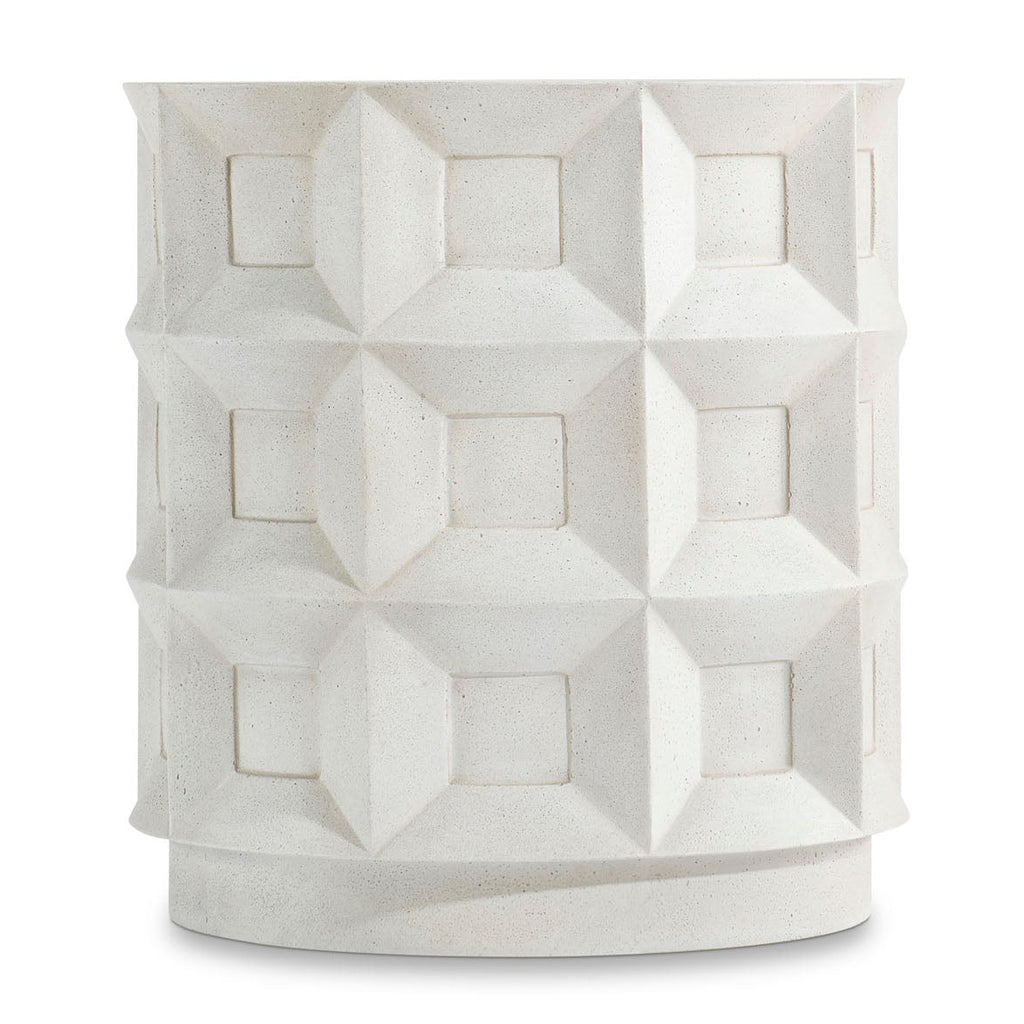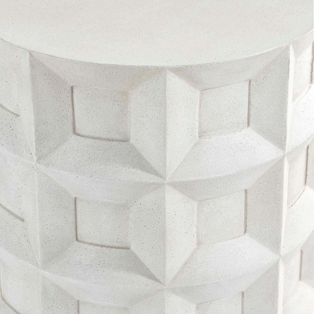 Classical architecture is the inspiration for the Prado accent table. The round table is formed in cast glass-reinforced concrete with a Buff finish, and a coffered design around the sides.