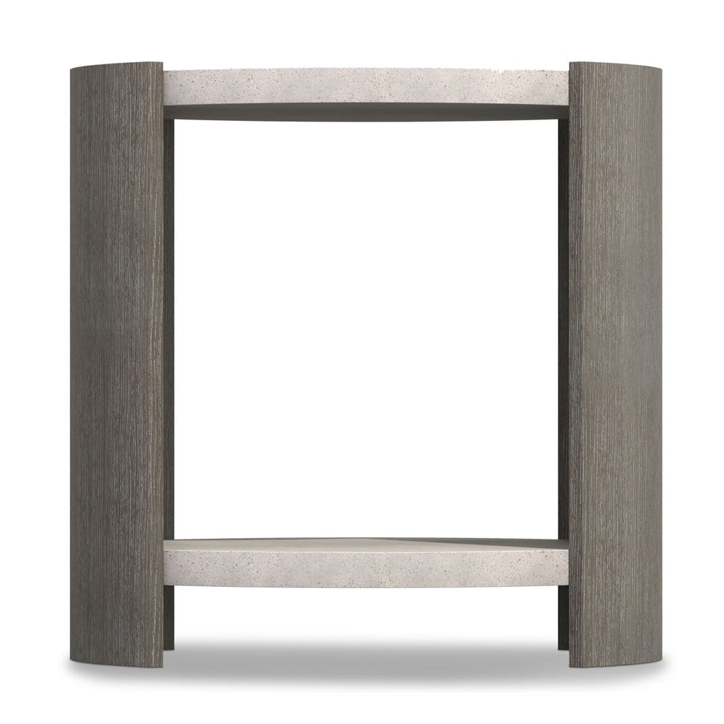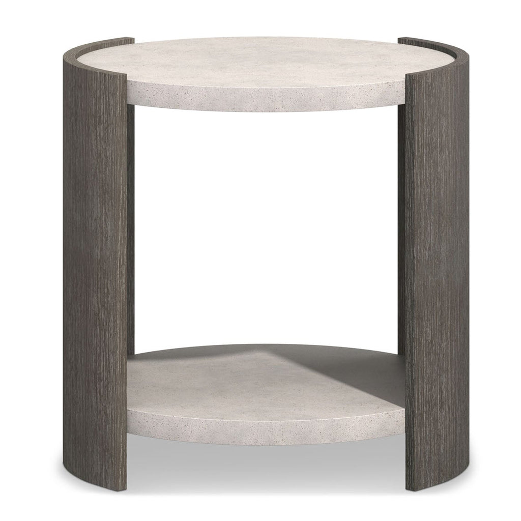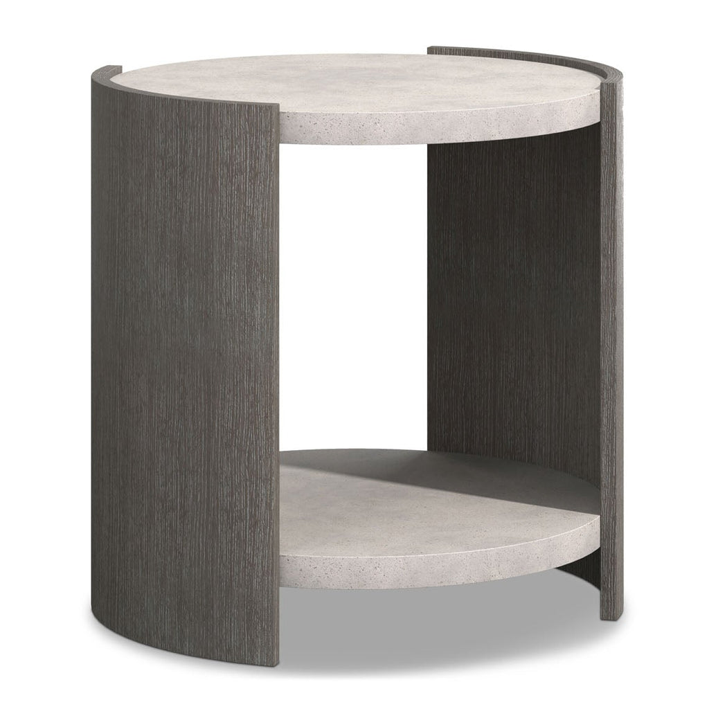The Prado side table offers a novel approach to modern rustic design. Two curved wood panels in a Porcini finish surround and support a round cast glass-reinforced concrete top and lower shelf. Textural finishes and the balance of light and dark finishes crafts a beautiful contemporary style.