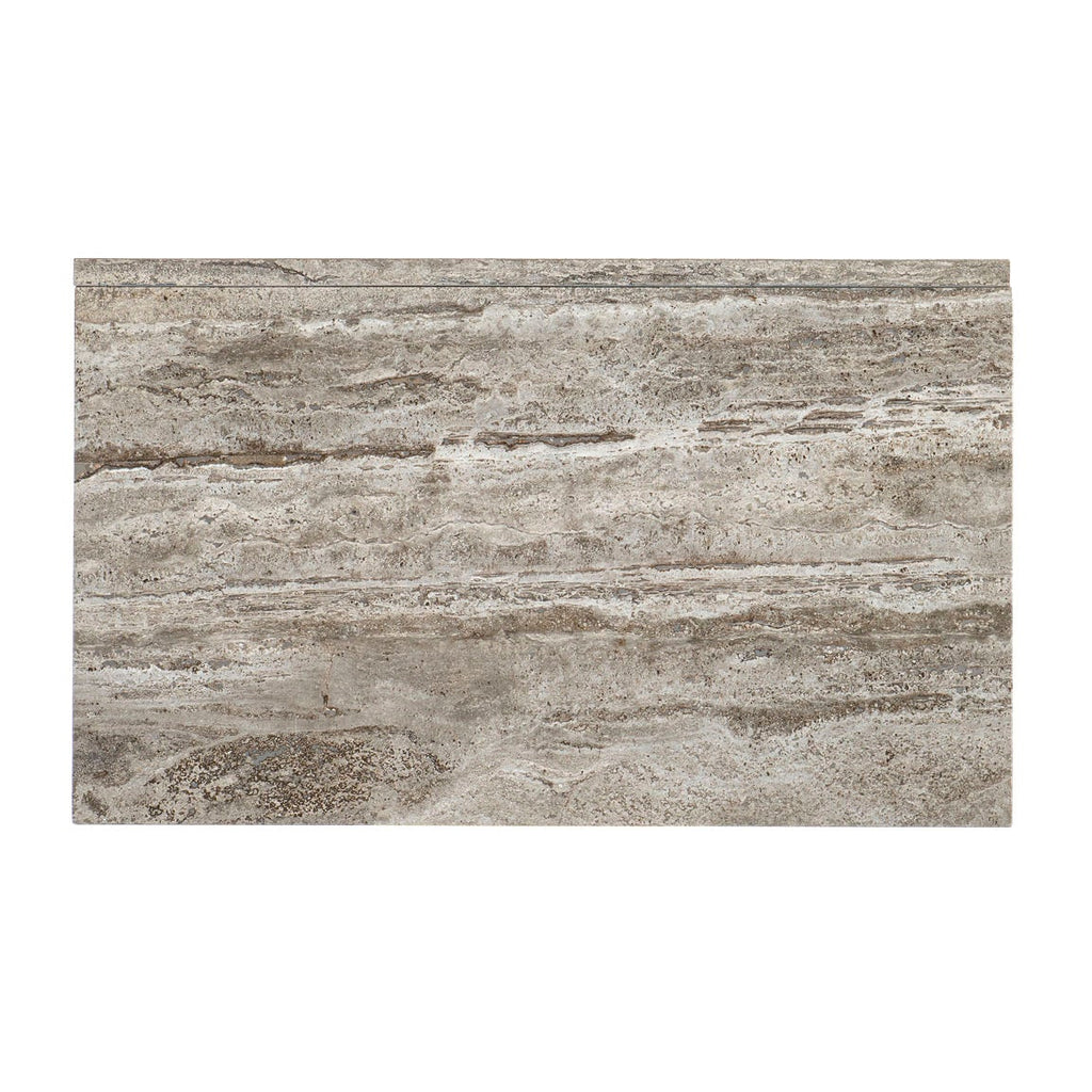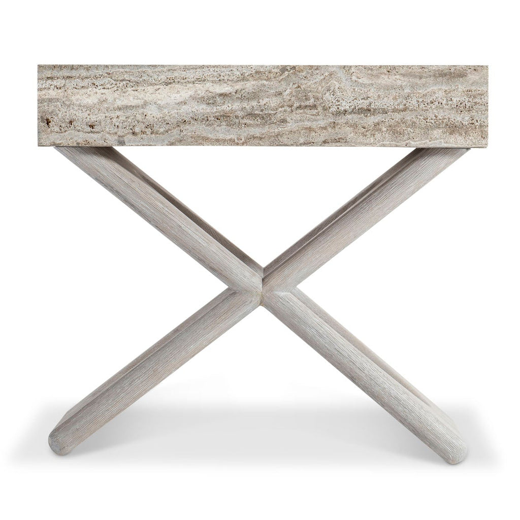 • Silver travertine drawer box with "X"-shaped oak wood base in Grigio finish