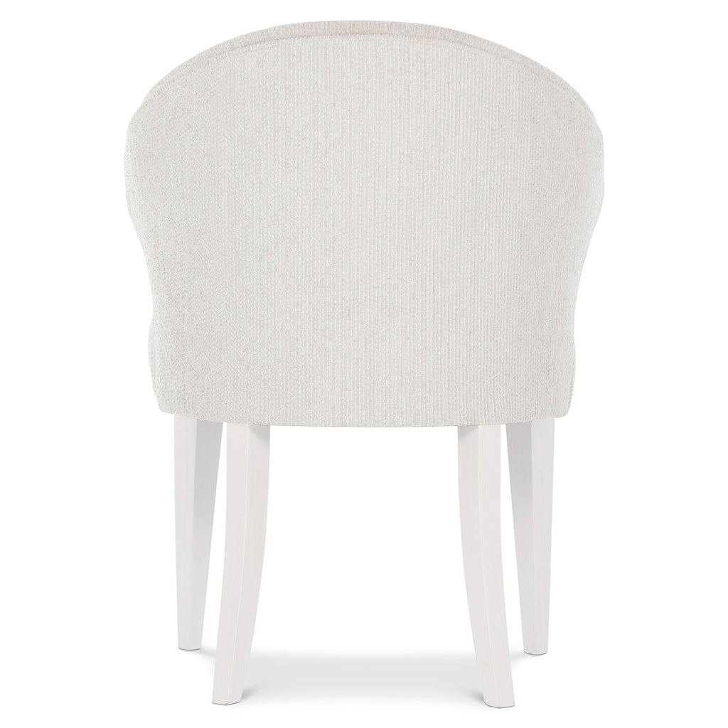 Silhouette is defined by bold contrasts, soft curves and a hint of Hollywood Regency glamour. Fully upholstered in light, textured fabric, the Silhouette arm chair blends comfort with opulence. Accentuated by welting, its elegant contours create a captivating profile. Sabre back legs and tapered front legs in Eggshell finish add a crisp, modern edge.