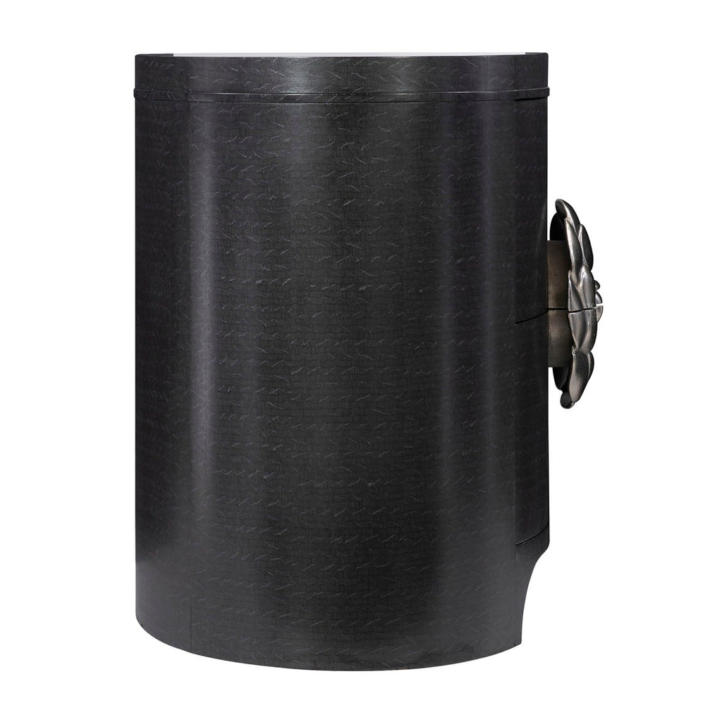 Silhouette is defined by bold contrasts, crisp tailoring and a hint of Hollywood Regency glamour. The Silhouette nightstand is a study in pattern, texture and subtle curves. Crafted from anigre wood in a Figured Onyx finish, it artfully combines classic style with effortless sophistication. The focal point of this singular piece is an oversized camellia-shaped pull in cast aluminum, which adds a natural feminine mystique.