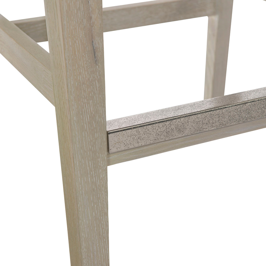 The unadorned profile of the Solaria bar stool allows the flawless craftsmanship to be highlighted. A lovely arched back is created from quartered white oak veneers, while the frame is quartered ash solids, both with a Dune finish. An upholstered seat offers comfort while maintaining the quiet nature of the design.